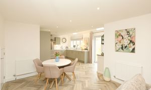 The stunning open-plan kitchen, dining, and lounge space forms the centrepiece of the property, offering an ideal environment for both everyday living and entertaining. The superbly designed kitchen features a complete range of integrated appliances, sleek finishes, and generous storage, creating a space that is both functional and stylish. The dining and lounge areas are filled with natural light and enjoy direct access to the garden, making this an excellent space for hosting friends, relaxing as a family, or simply enjoying modern open-plan living.