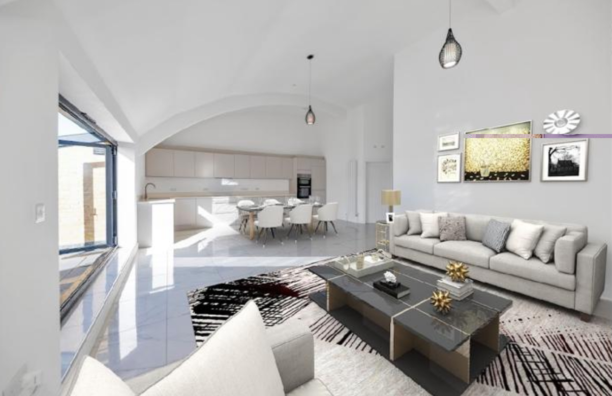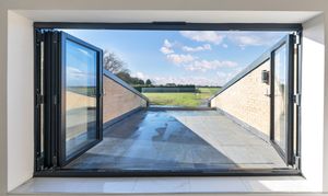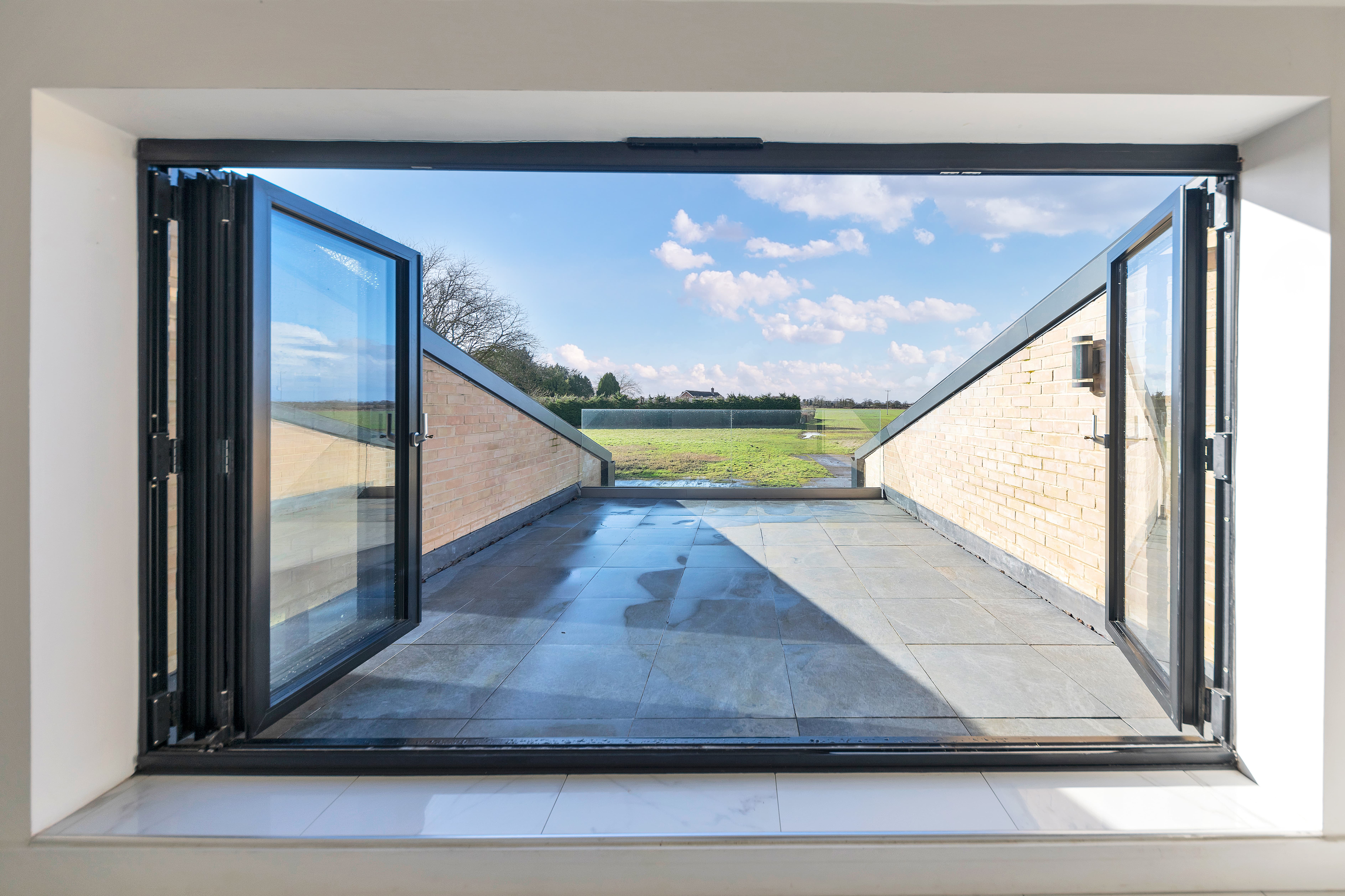 Upstairs to the first floor, you immediately step inside the stunning open-plan kitchen/dining/living space, which enjoys vaulted ceilings, pendant and inset lighting, tiled flooring, ample space for a wide variety of lounge, dining and storage furniture, and a gorgeous countryside outlook via bi-fold doors which lead out onto a large balcony. The balcony provides excellent space for garden furniture and entertaining guests.