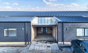 This beautiful barn conversion enjoys a unique and tidy frontage, with plenty of off-road parking and an under-cover entryway. Through the front door, the entrance hallway is bright, wide and beautifully decorated, alluding to the high standard seen throughout. It benefits from tiled flooring, inset lighting, integrated storage, stairs to the first floor, and doors through to a large second bedroom and a separate utility room, with excellent storage, a sink and room for large laundry appliances.