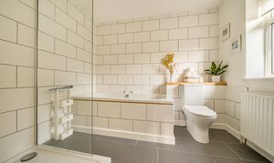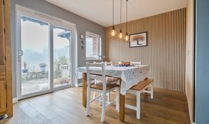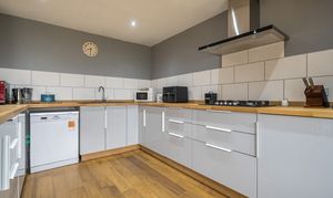 The ground floor is introduced by a large, welcoming hallway, leading to a spacious living room with an adjoining snug, creating both open and intimate spaces for family living. The kitchen diner enjoys sweeping views across the land and serves as the natural heart of the home, complemented by a separate utility room. Also on this level are three bedrooms, including the main bedroom suite, which enjoys rolling views across the estate as well as a private en-suite bathroom, ensuring both comfort and seclusion. Upstairs, two further bedrooms benefit from fantastic countryside views, along with a stylish family bathroom, offering versatility for guests, children or home working.