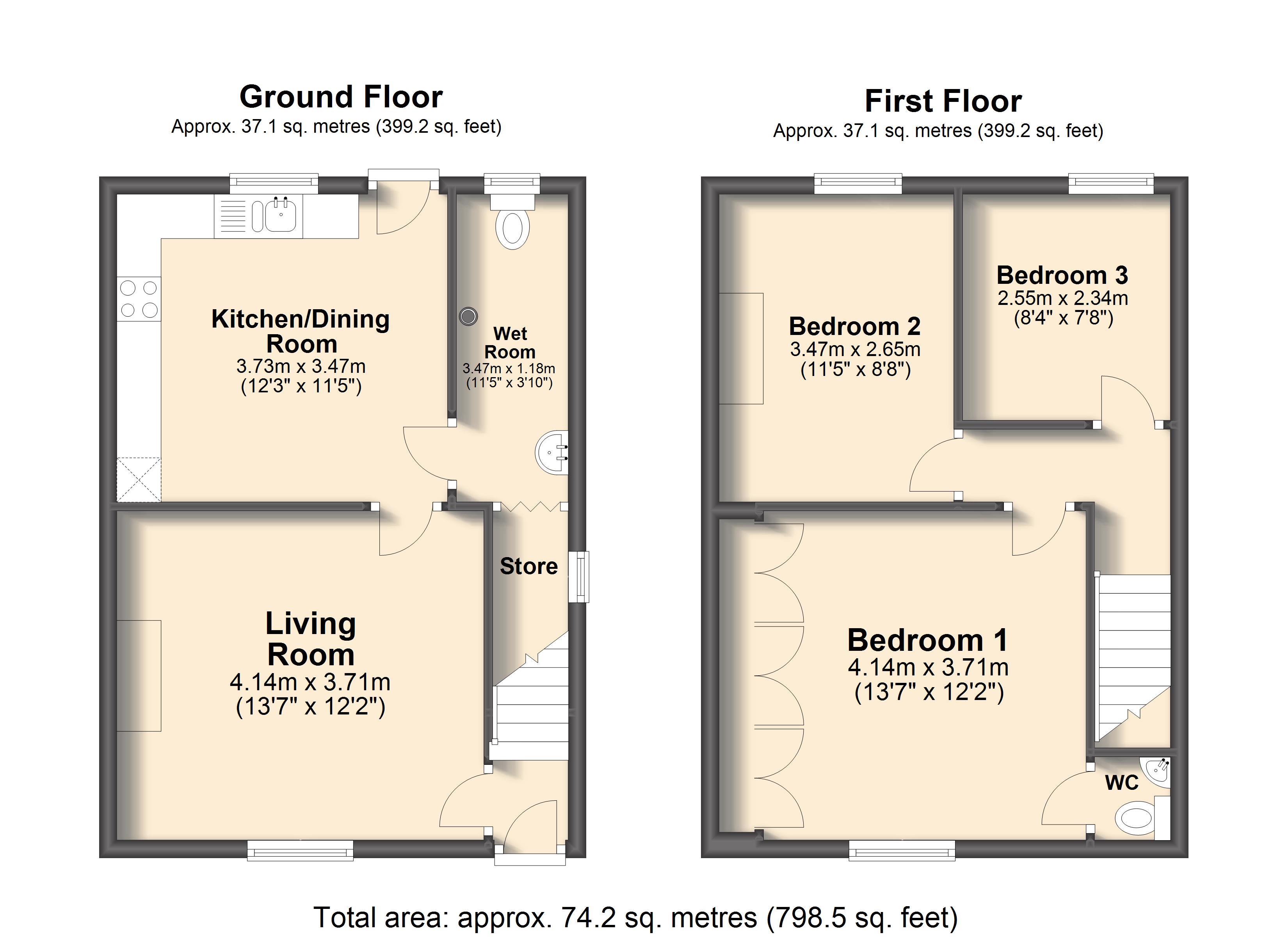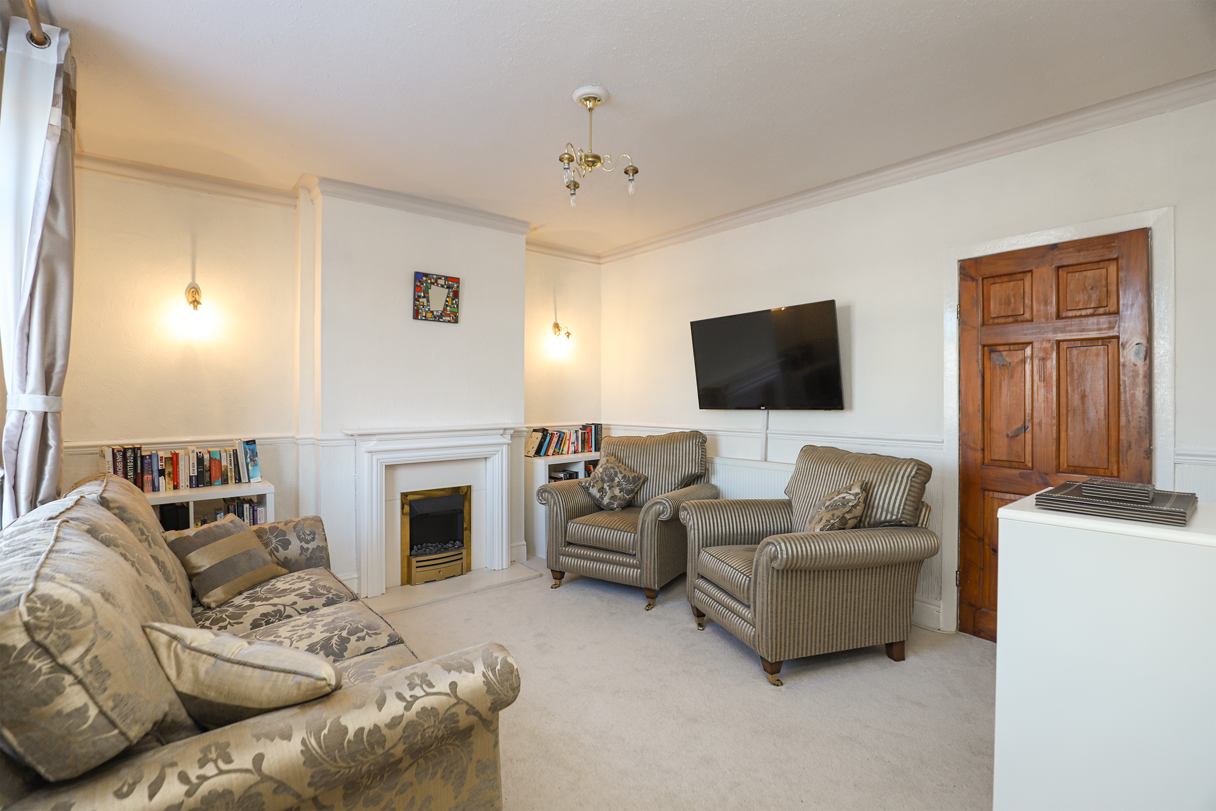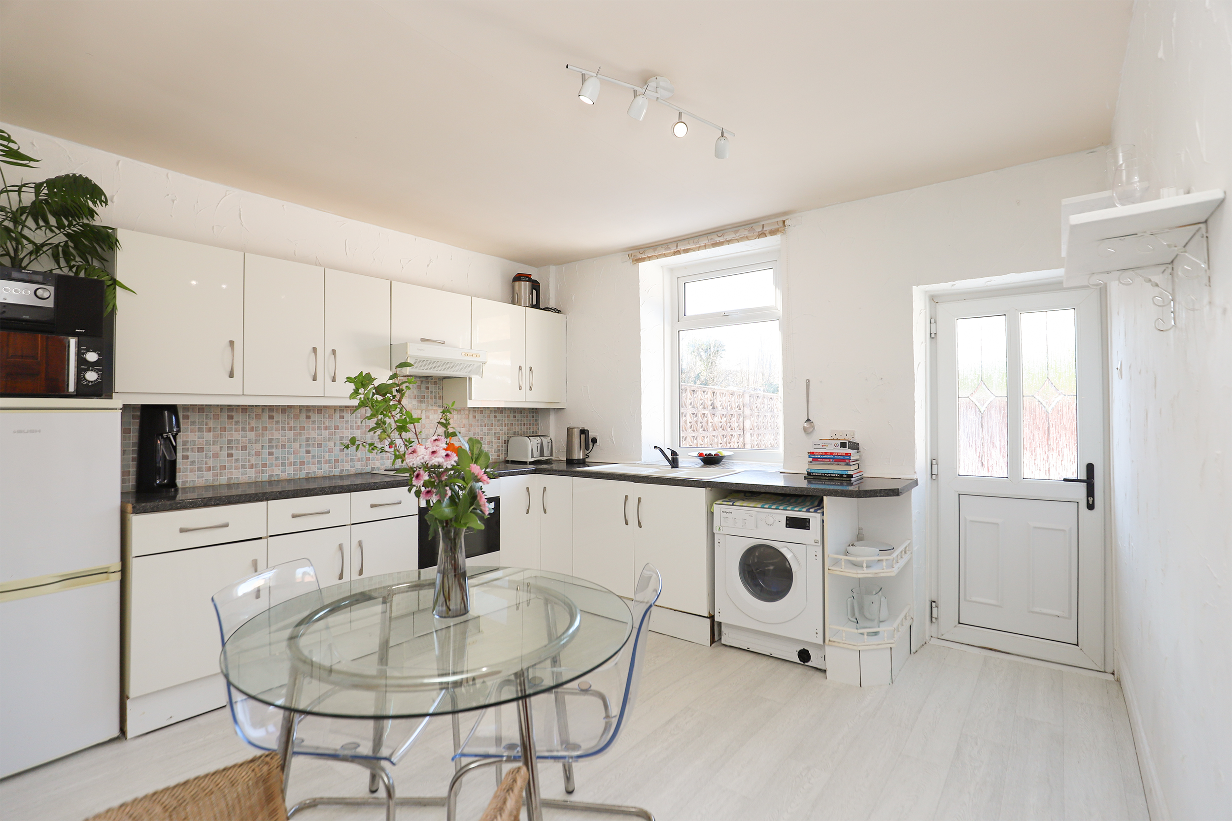 On entering the property, you have a spacious living room, an excellent space for hosting friends and family, enhanced by a modern fitted kitchen and dining room to the rear. Originally built as a detached home it is extremely well insulated and surprisingly quiet. A contemporary wet room with a three-piece suite furthers the ground floor alongside a separate storage cloak. The three good-sized bedrooms are situated on the first floor, with the principal offering its own w/c and fitted wardrobes. To the rear is a low-maintenance, south facing garden, an ideal space for entertaining or enjoying an evening drink. An additional front garden offers a lawn, a patio area and a driveway for the off-road parking.