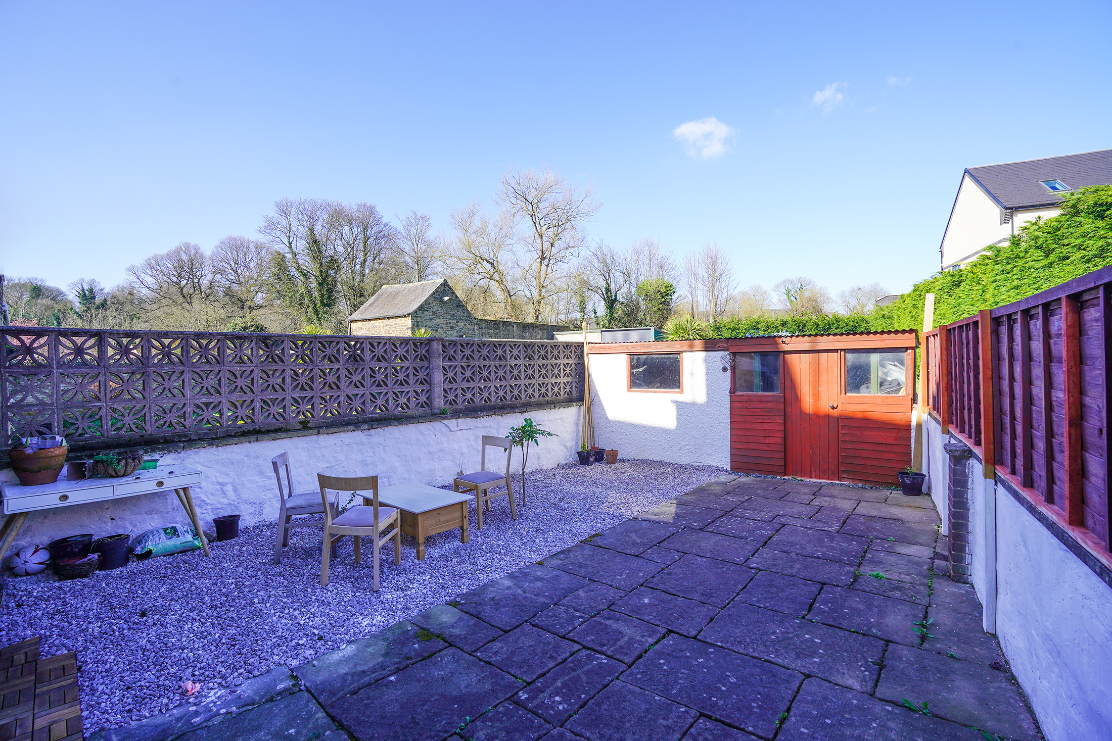Landscaped garden to front with lawn, low maintenance garden to rear with shed/storage.