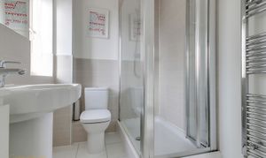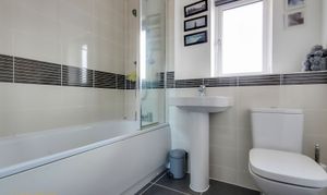 Upstairs, the main bedroom has fitted wardrobes and its own shower room. There are three further double bedrooms and a bathroom, all finished in line with the rest of the house.