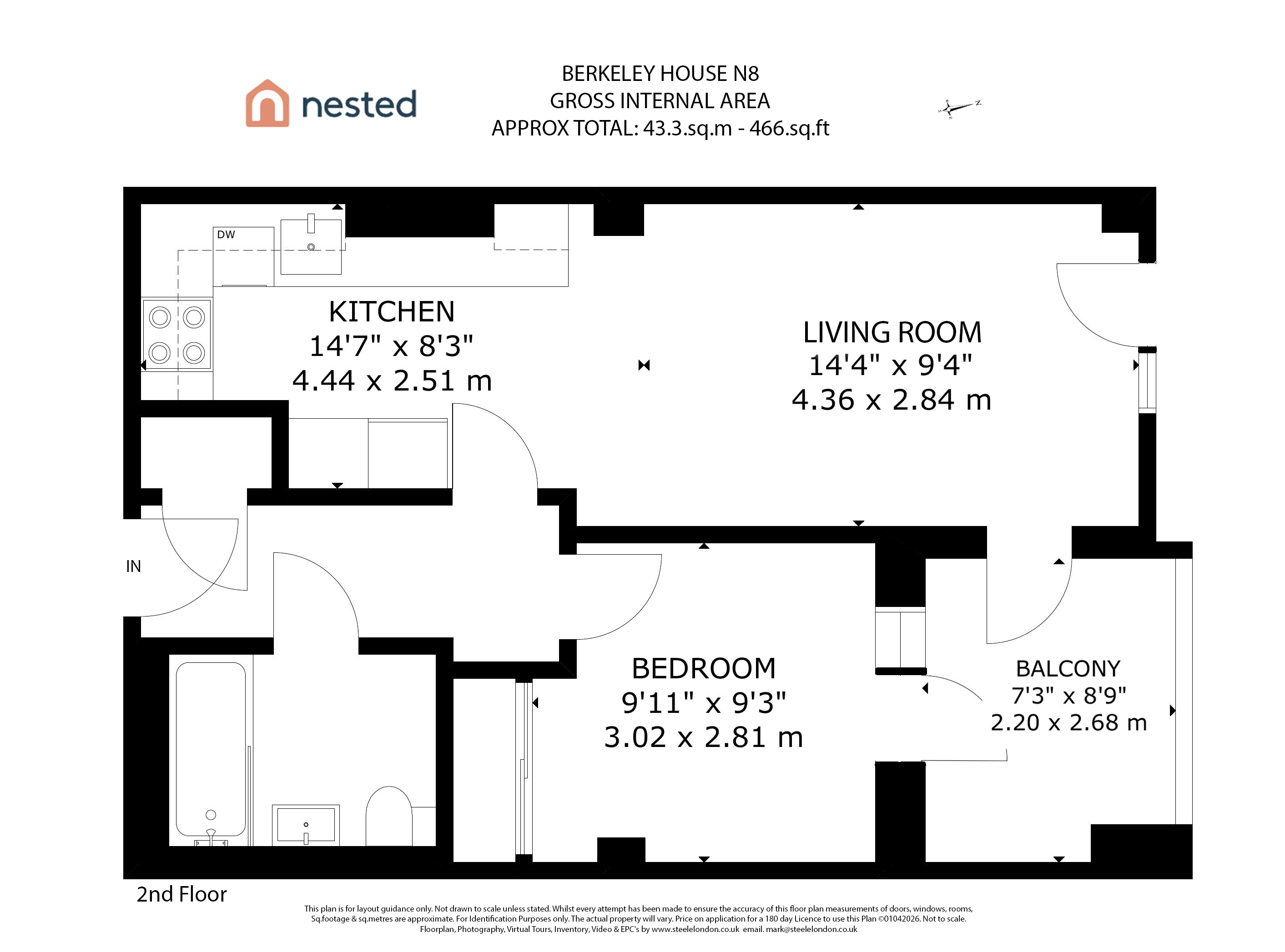 - Approx Sq Feet: 466 sqft