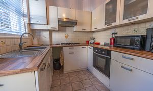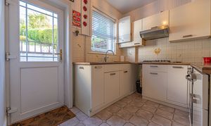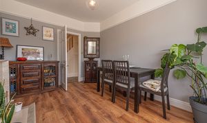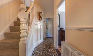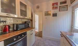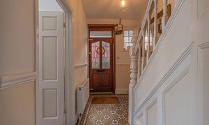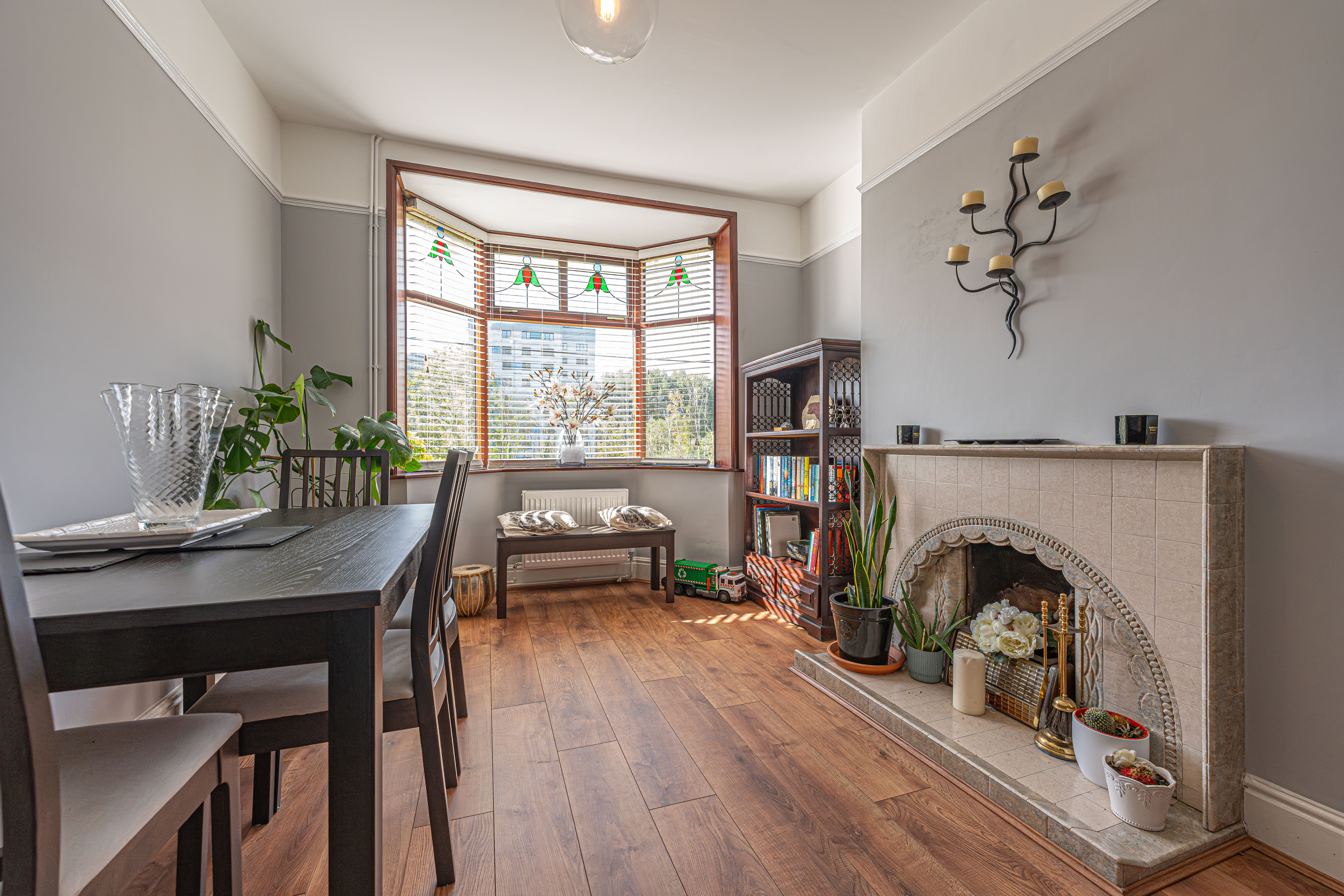 This charming three-bedroom semi-detached house offers an impressive blend of classic period features and modern updates, creating a welcoming and stylish family home. From the entry hallway we can find a gorgeous mosaic style tiling, while the two reception rooms have been newly redecorated with a wood-effect laminate flooring, and retain the original fireplaces for decorative effect. Both the lounge and dining room are spacious in size and flooded with natural light, thanks to the luxury of the bay windows. From the entry hallway we can find the practical kitchen, with various storage units surrounding the fitted hob and oven, while further storage can be found from a useful pantry cupboard underneath the staircase.