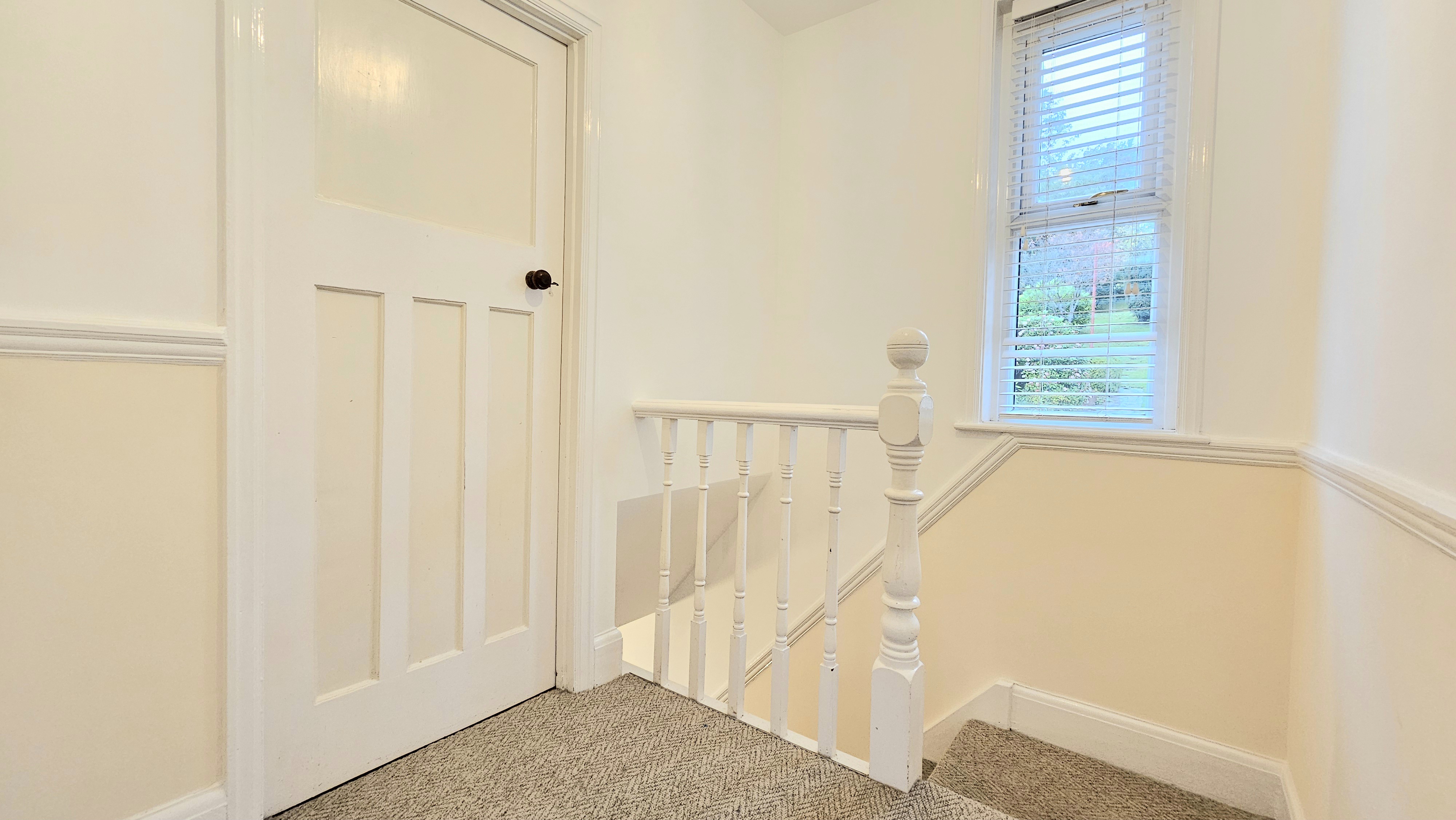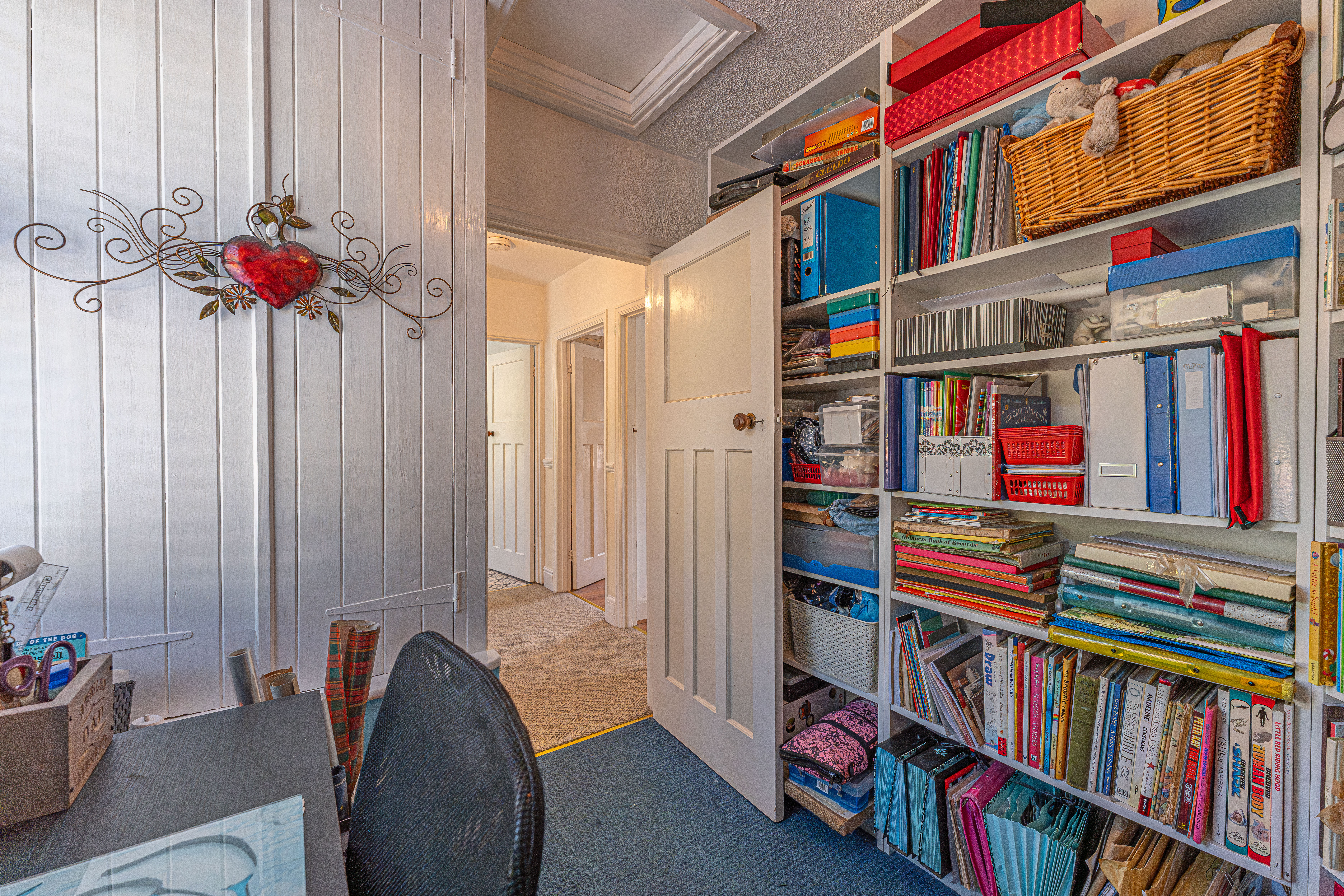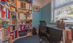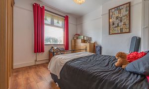 To the first floor we have three bedrooms, including two doubles and a third single, which is currently in use as a fantastic home office. The two front facing bedrooms benefit from a great view of the surrounding area, whilst the sleek family bathroom is shared from the hallway, equipped with a bath suite and a separate walk in shower unit.