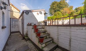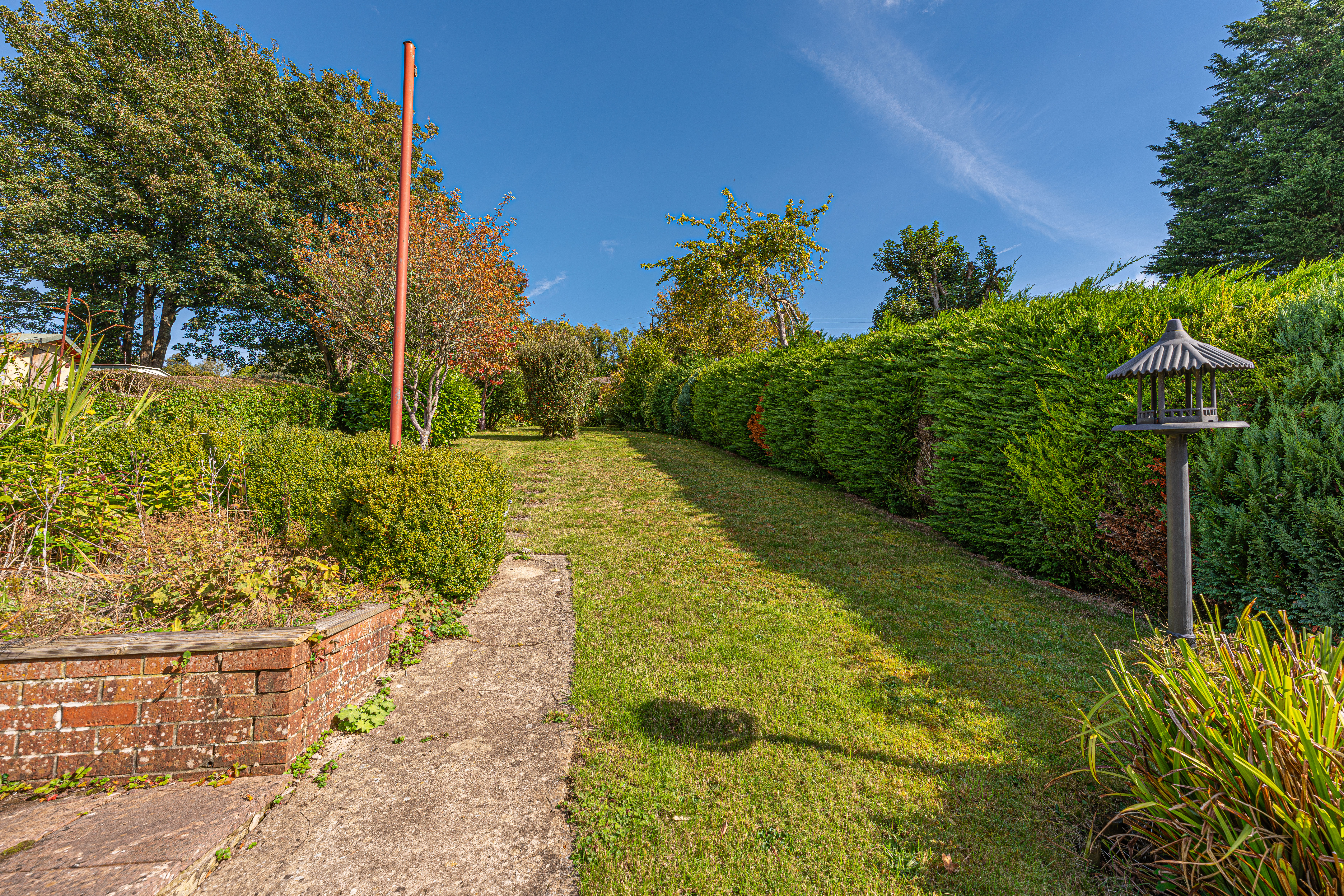 The exceptional outdoor spaces truly set this home apart, with an expansive lawn garden stretching away from the property, including mature trees, privacy hedges, an abundance of green space, perfect for a tranquil retreat. The garden also offers multiple patio areas to provide inviting spots for lounging, dining and entertaining visiting friends and family, all complemented by scenic hillside views. Another benefit to the property is an outhouse found from the patio, which is fitted with electricity and plumbing, making it an ideal space for a utility room, managing laundry, or even overflow storage, with incredible potential for future residents. The outdoor space continues to the front of the house, with another large lawn welcoming on approach to the property.