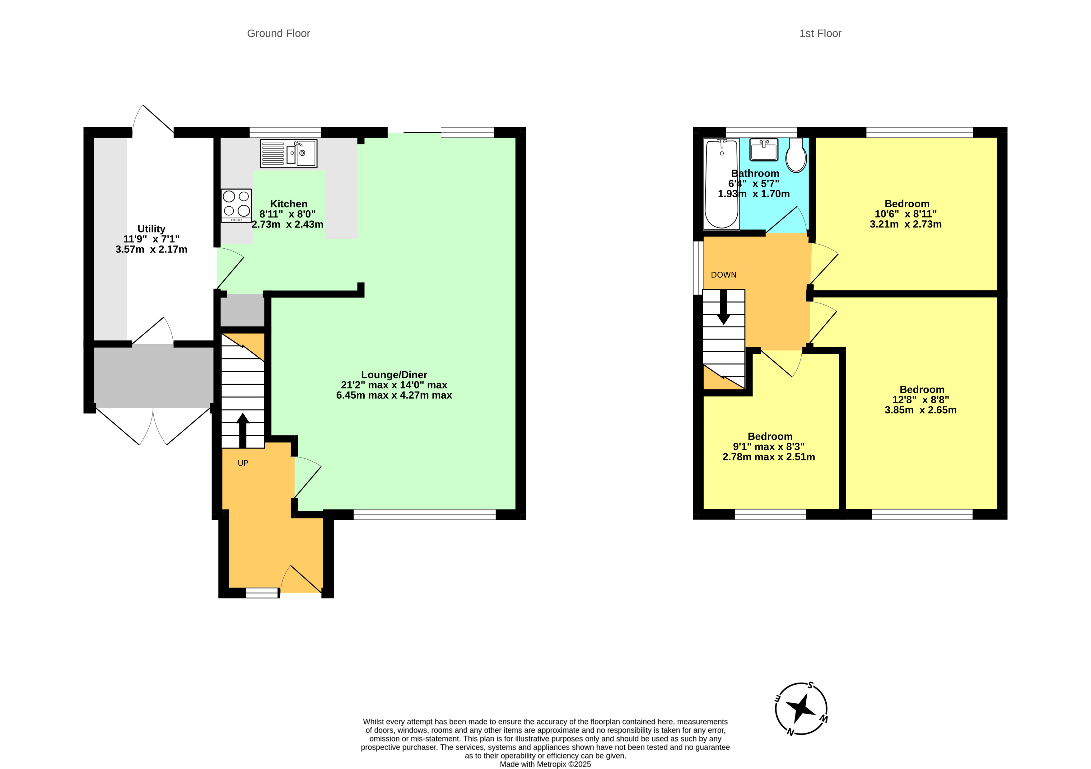 Upstairs, there are three bedrooms, two of which are doubles, along with a family bathroom that includes a bath with overhead shower and modern fittings.