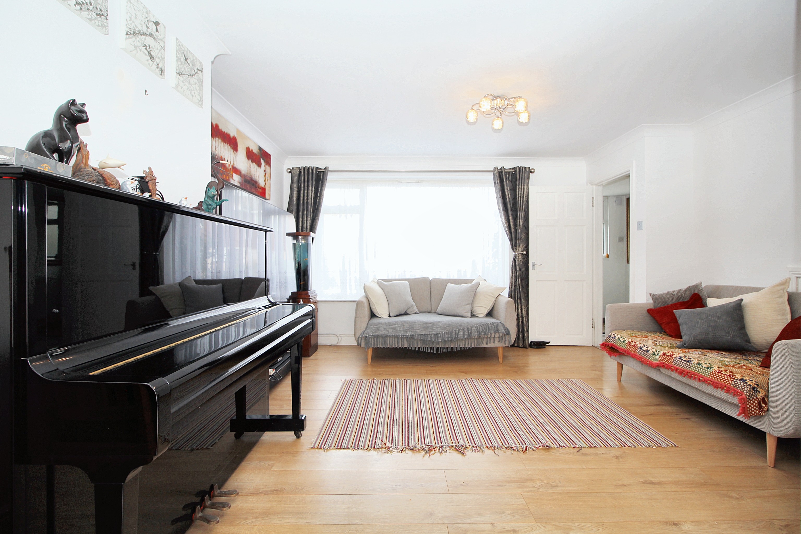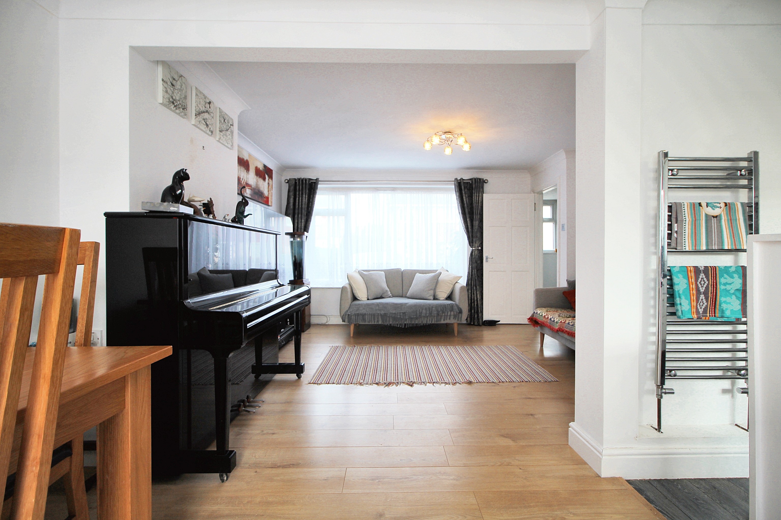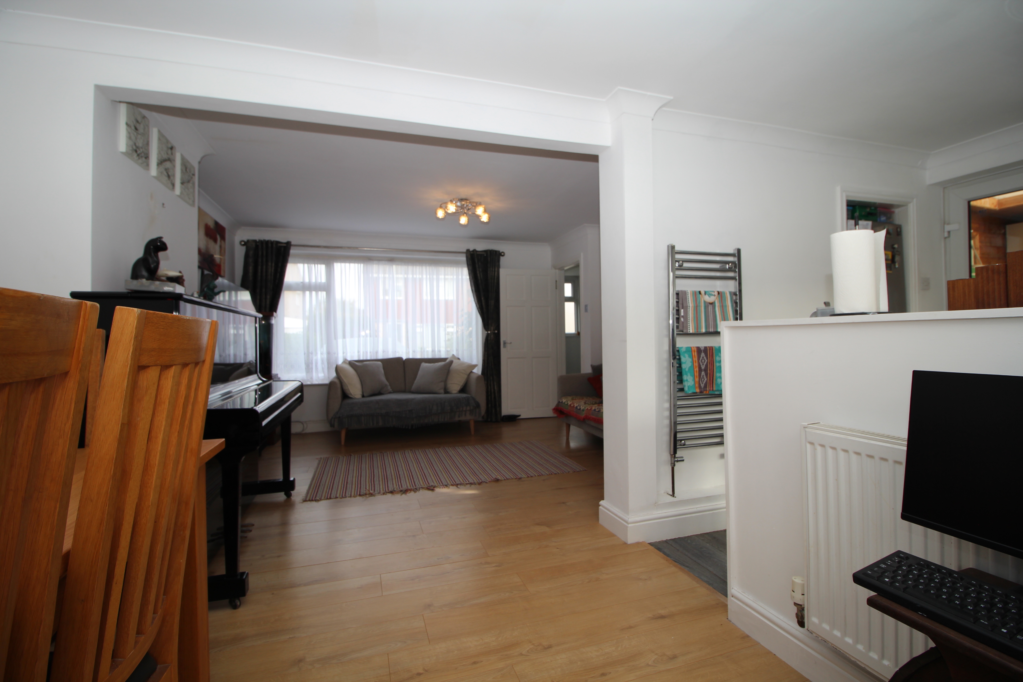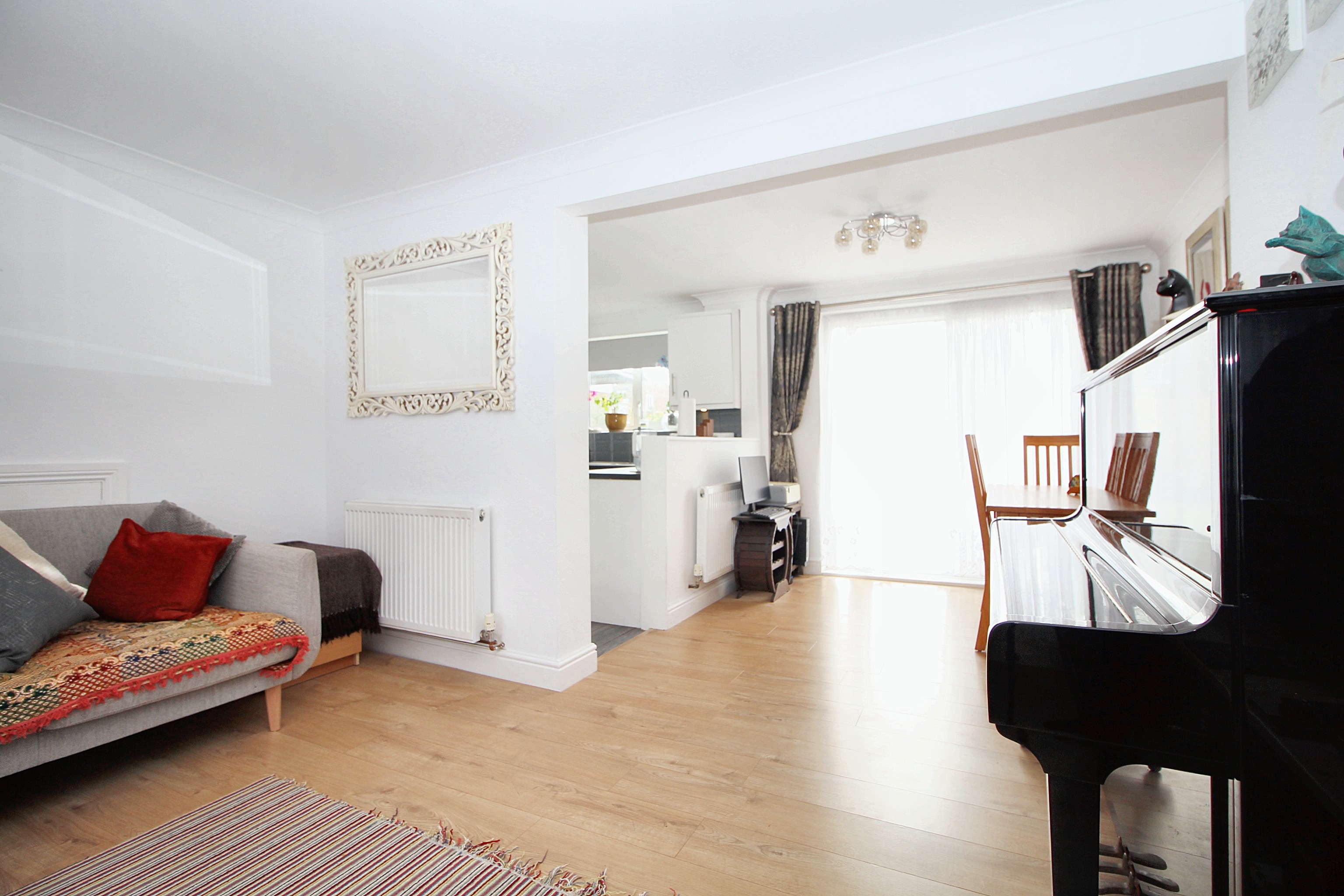 This well presented three-bedroom semi-detached house has been updated to provide modern and practical living. The ground floor offers an open plan living and dining area with large windows and sliding doors opening onto the garden. The kitchen is fitted with contemporary units, integrated appliances, and good worktop space.