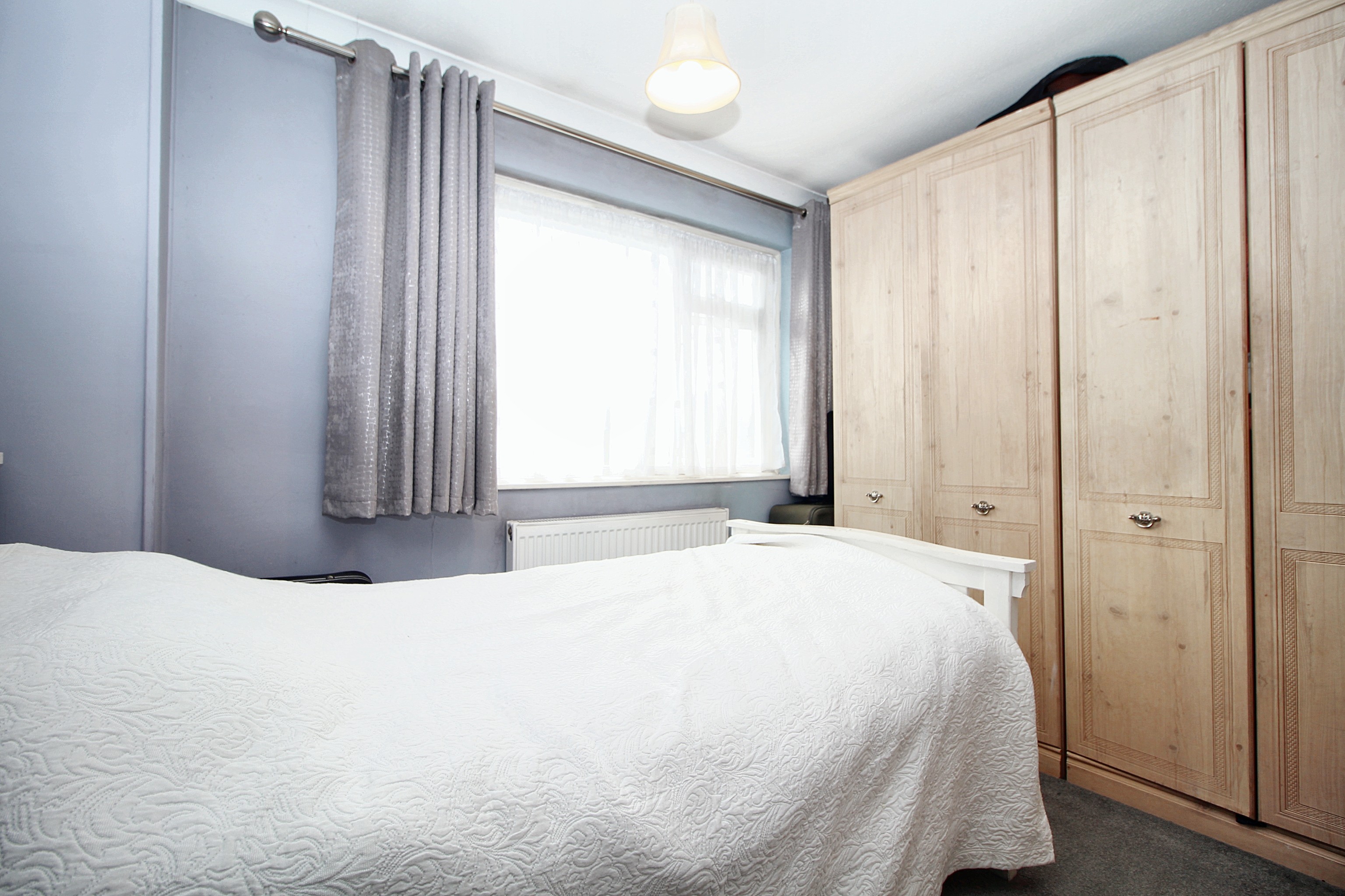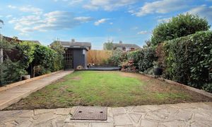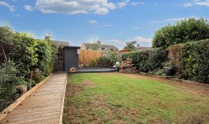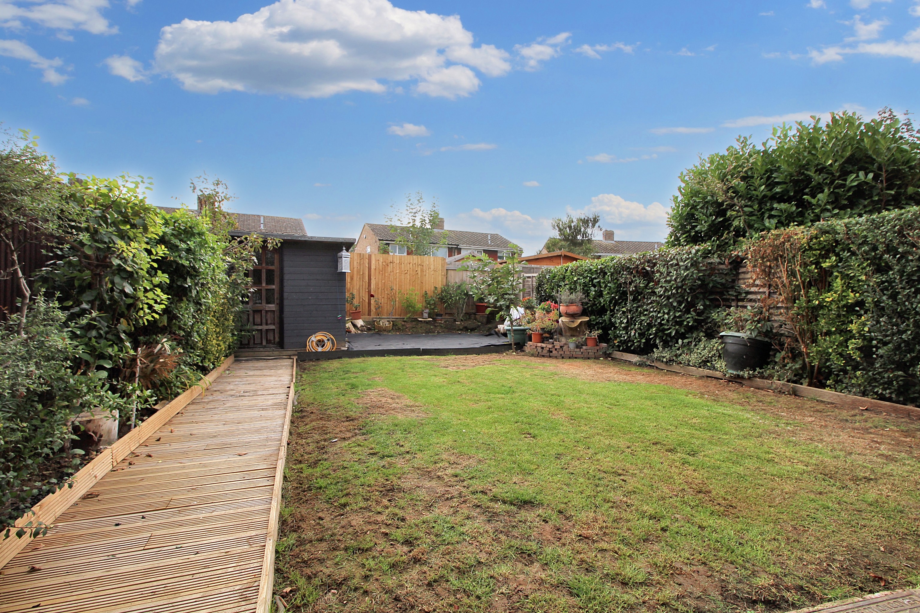 The rear garden is mainly laid to lawn with a paved patio and a garden shed. To the front, there is a driveway providing off-road parking.
