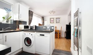 Matching wall and base units. Space and plumbing for washing machine. Stainless steel sink with mixer tap. Window to the garden. Door to the utility area.