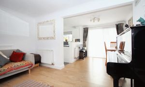 Wood effect flooring. Large window to the front. Open plan to dining area.