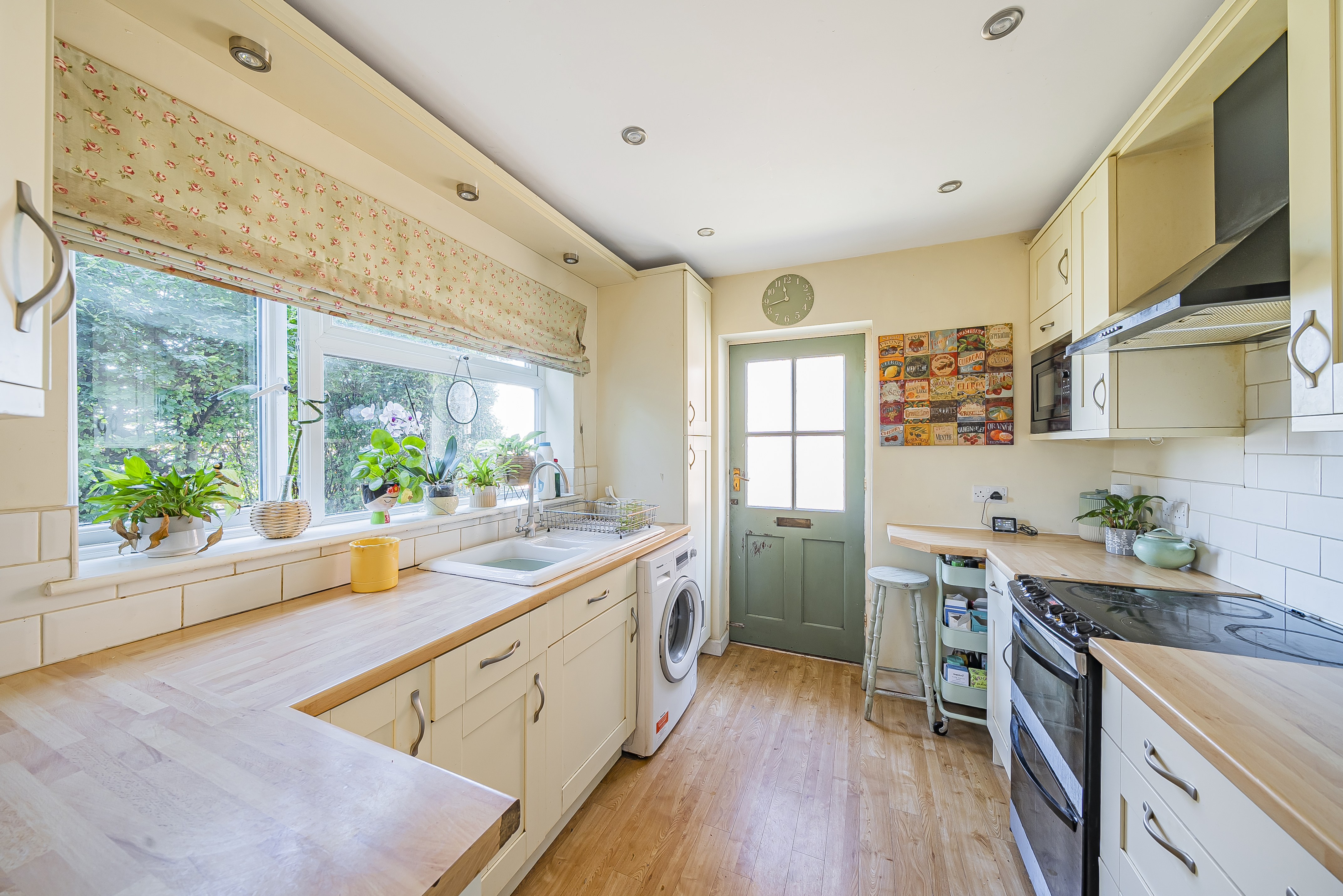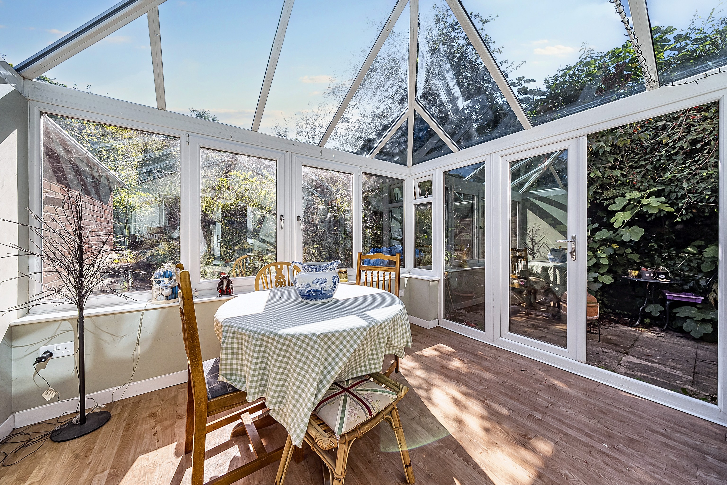 The house is approached via a driveway with parking for several cars leading to a garage – a useful space for storage. The front garden is both lawned and hedged and has a side return which leads through to the rear. The back garden is fully enclosed, offering exceptional privacy and enhanced by its sunny aspect offers a perfect setting for relaxing. With the property backing onto serene woodland, the outdoor space feels wonderfully rural, providing a picturesque and tranquil backdrop.