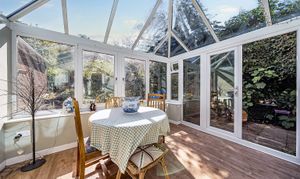 light and airy. It opens out to a large conservatory with underfloor heating. French doors open to a garden