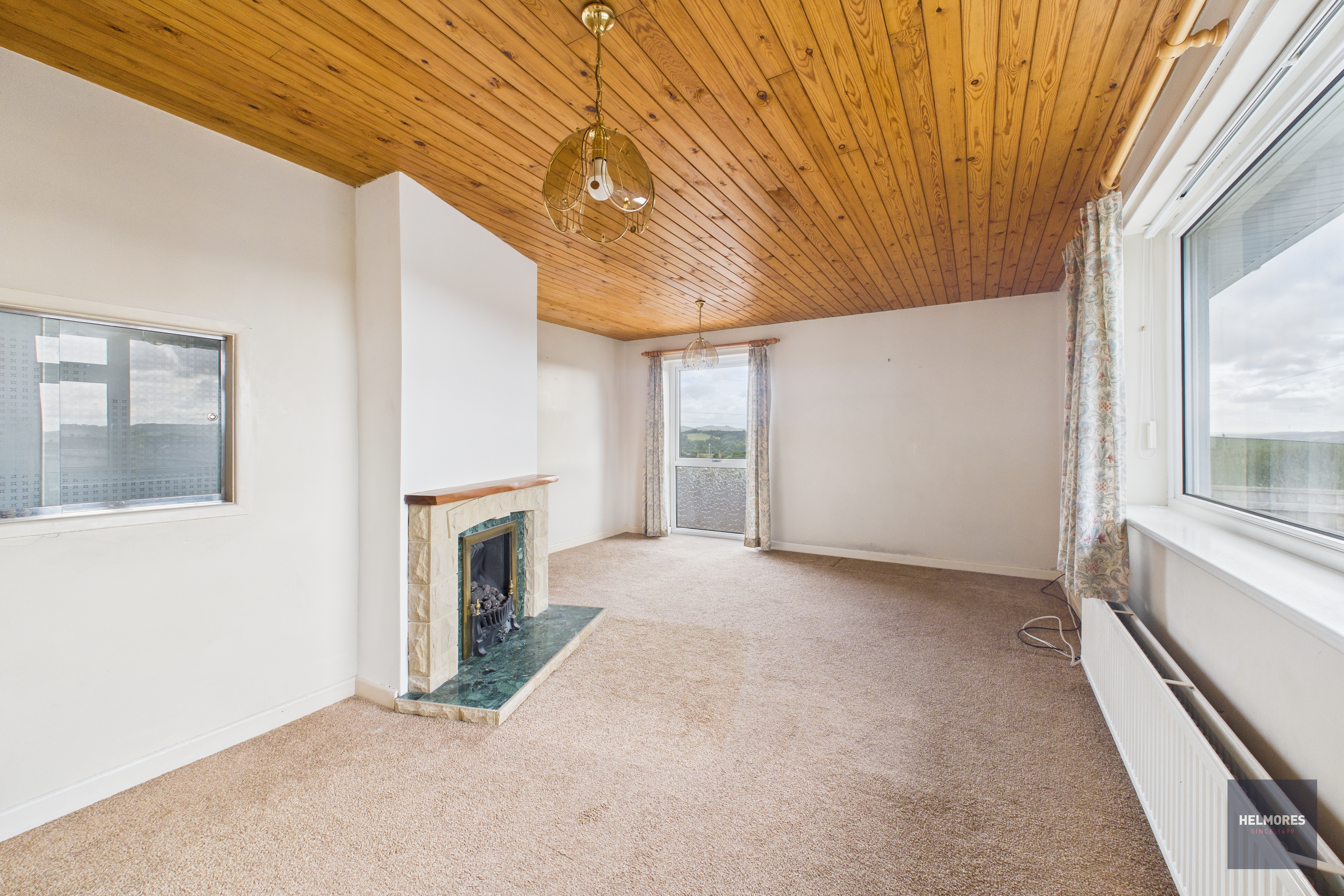 The kitchen has an array of units with an oven and gas hob along with space for appliances. The spacious hallway with storage leads into the lounge with a feature fireplace and super views. The conservatory to the side has double doors leading out to the garden. A few steps lead up to the bedroom areas where there are 3 good sized bedrooms and a bathroom with vanity fitted sink unit, a jacuzzi bath and shower over. There is also a roomy airing cupboard with shelving for extra storage. There is uPVC double glazing throughout and gas fired central heating. There are solar panels (owned outright) which assist with heating the hot water.