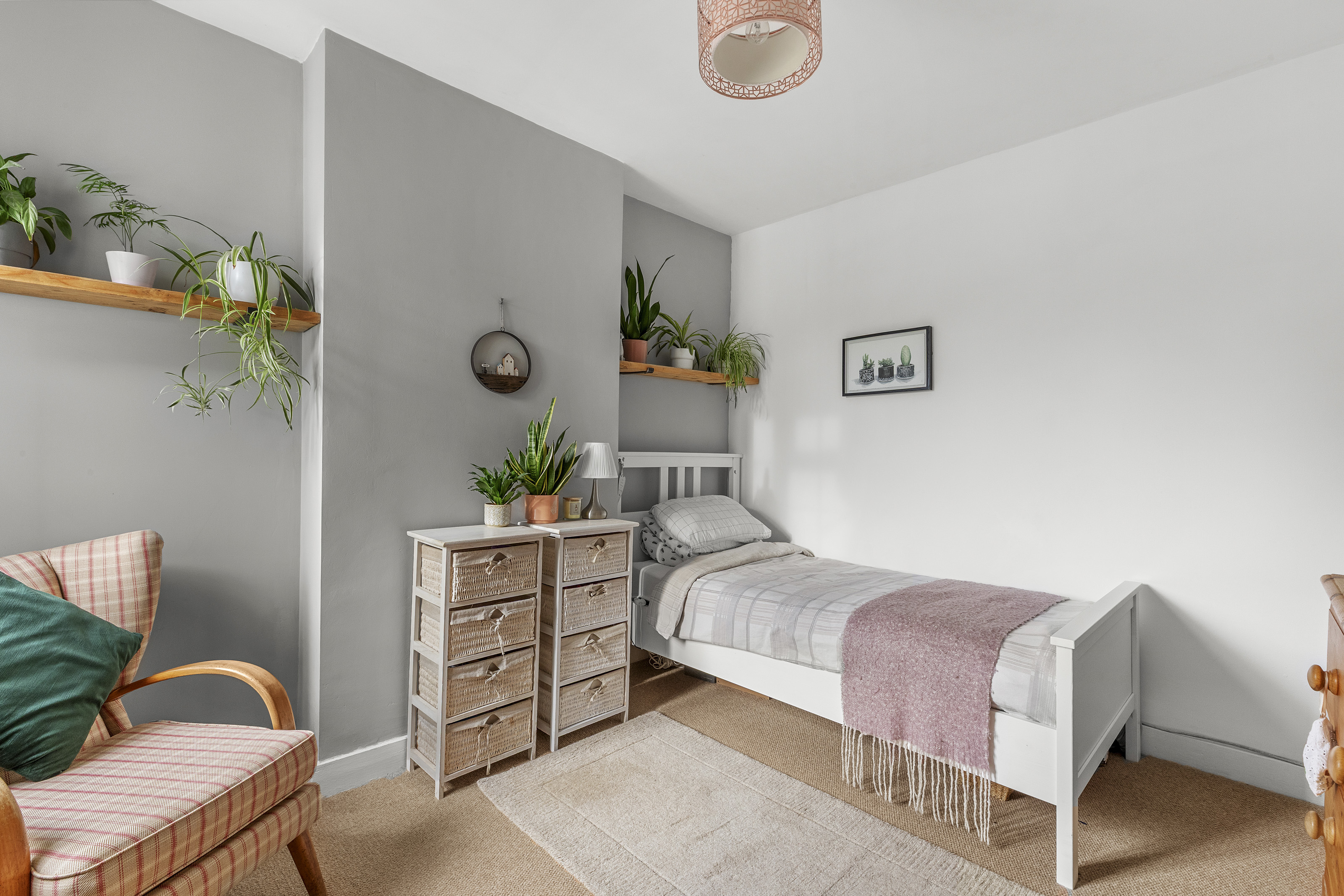The South Westerly rear garden is mainly laid to lawn with various shrub and flower borders. Accessed from the kitchen is a paved patio and seating area with gated side access to the side and front garden. There is a single garage with power and light ideal for additional storage or converting to a home office or similar. The front garden has hardstanding providing off street parking for at least one car.