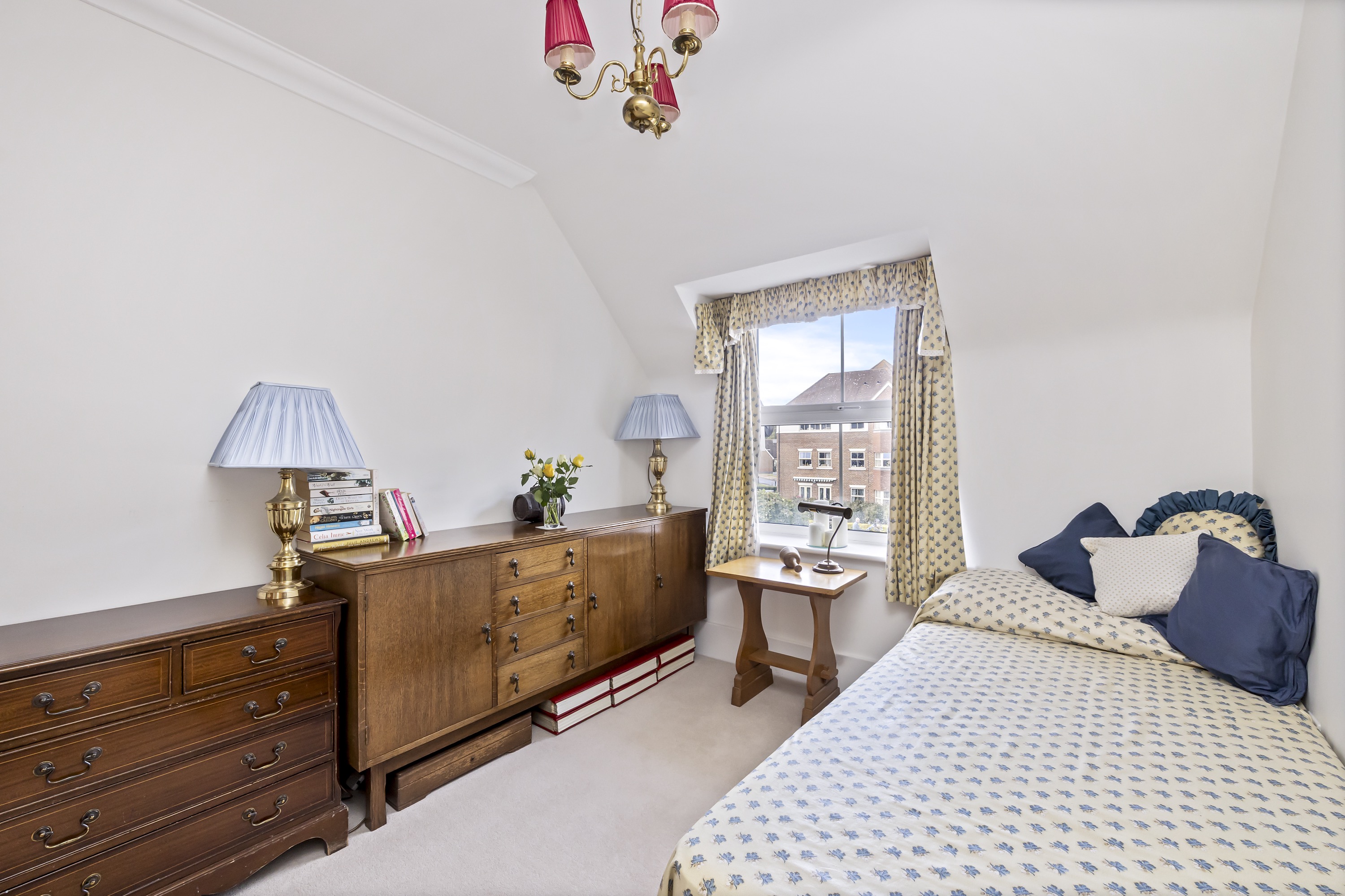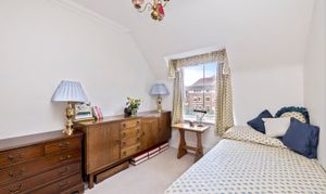 This two double bedroom retirement apartment is on the second floor and is easily accessed by lift. Bedroom one has an ensuite, both bedrooms have built in wardrobes, and there is also a separate bathroom, and additional storage space. There is a generous double aspect living room with a Juliet balcony overlooking the village croquet lawn, and a light and airy fully fitted kitchen/diner.