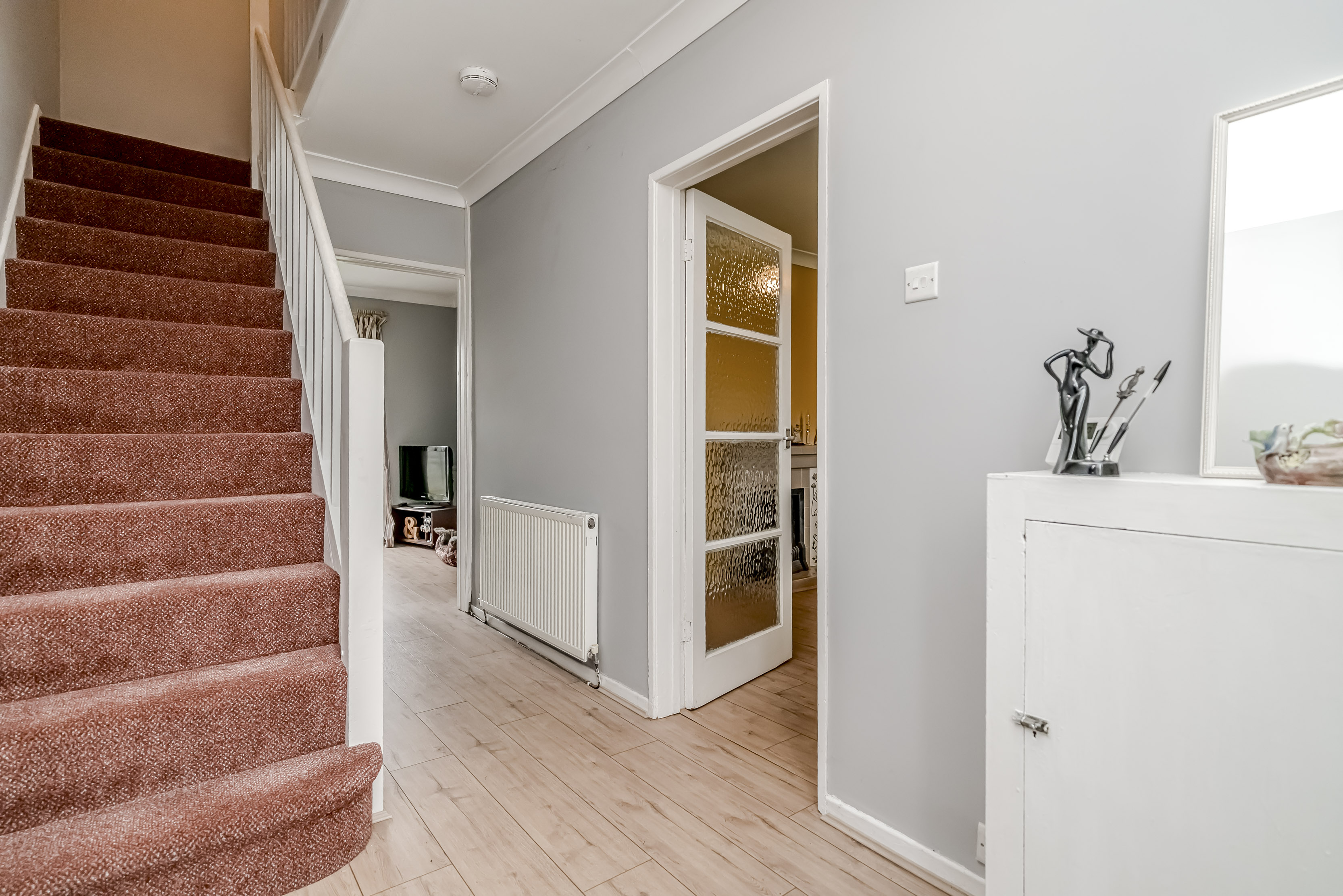Positioned at the end of a peaceful row and enjoying gardens to both the front and rear, this attractive home offers excellent internal space extending to approximately 1,190 sq ft, making it an ideal choice for first-time buyers, growing families or those seeking a property with practical, versatile accommodation in a well-connected residential setting.