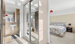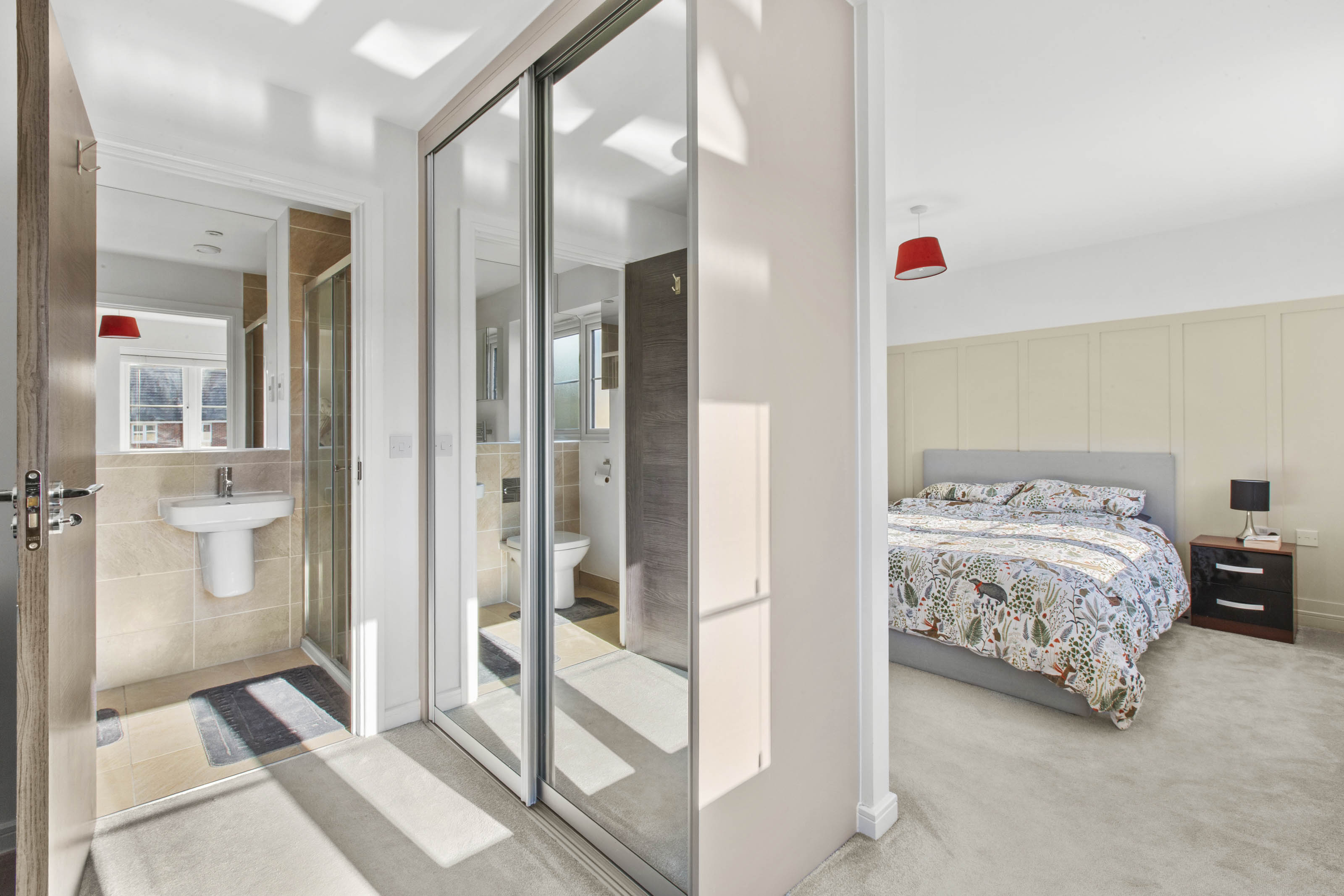Upstairs, the home continues to impress with four generously sized double bedrooms, two of which benefit from well-appointed en suite facilities. The principal bedroom enjoys the added luxury of a dedicated dressing area with fitted wardrobes, while a sleek and modern family bathroom serves the remaining bedrooms.