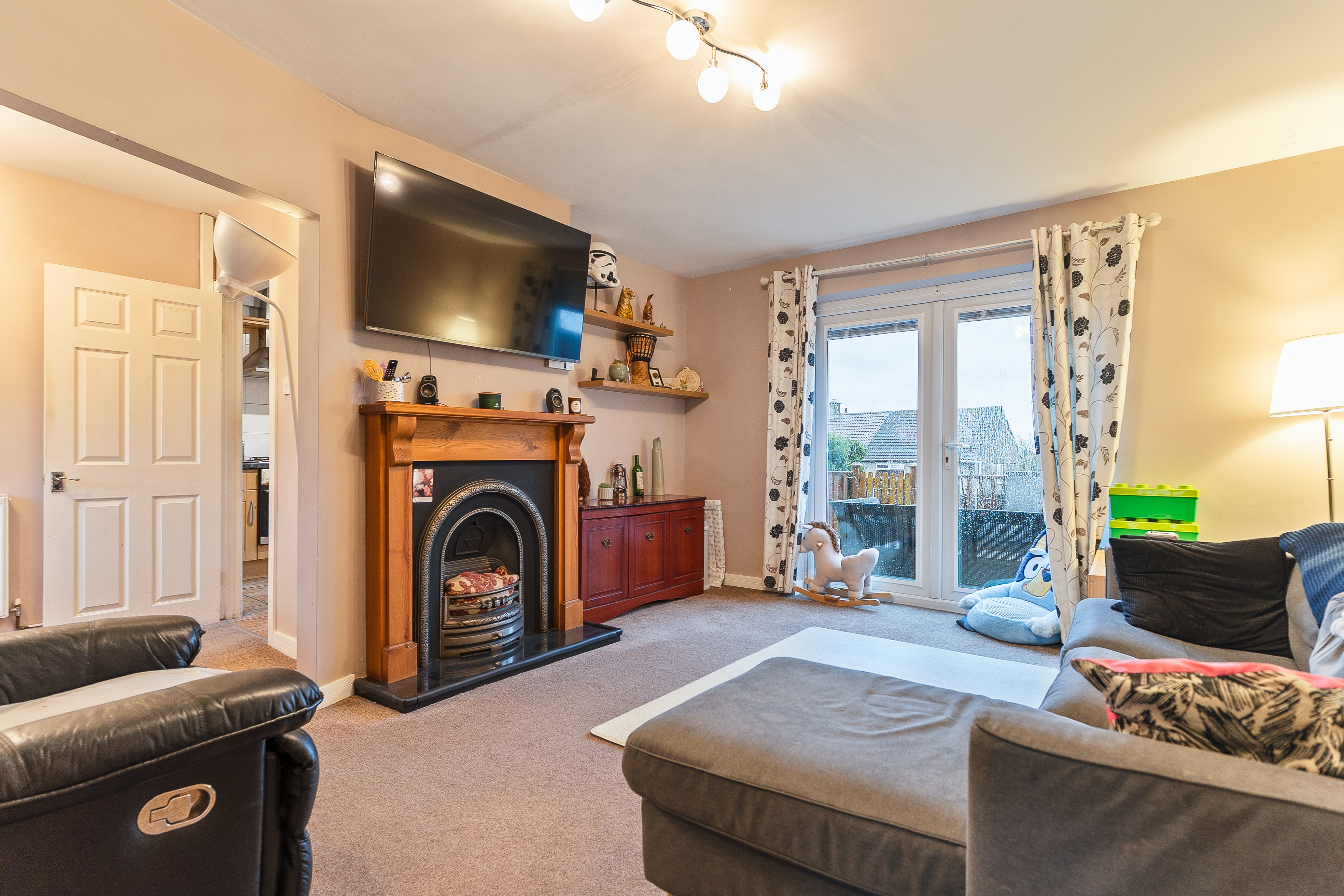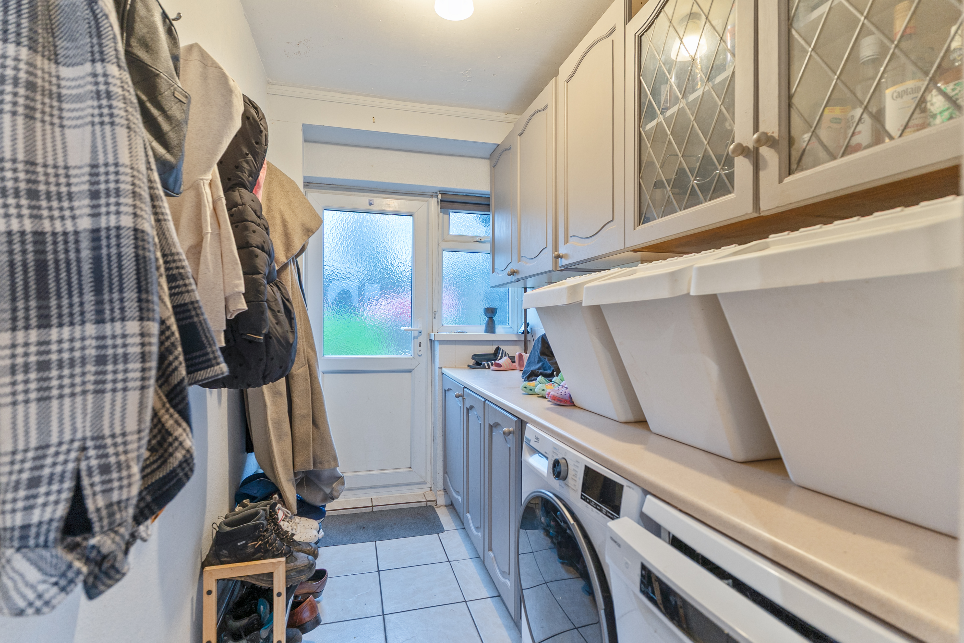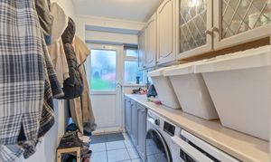 Upon entering the property, you are welcomed into an initial hall space with the staircase positioned to the left and access into the main living area. The open-plan lounge/diner provides a spacious and versatile environment for both relaxation and family dining, with patio doors opening directly onto the rear garden. From here, you are led into the well-sized fitted kitchen, offering ample storage and worktop space, along with an additional door to the garden. A particularly generous utility area adjoins the kitchen, providing valuable extra room for appliances and household storage.