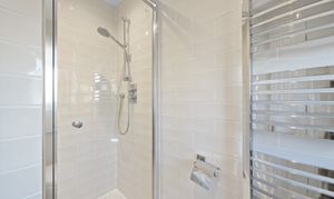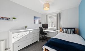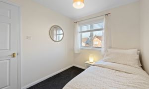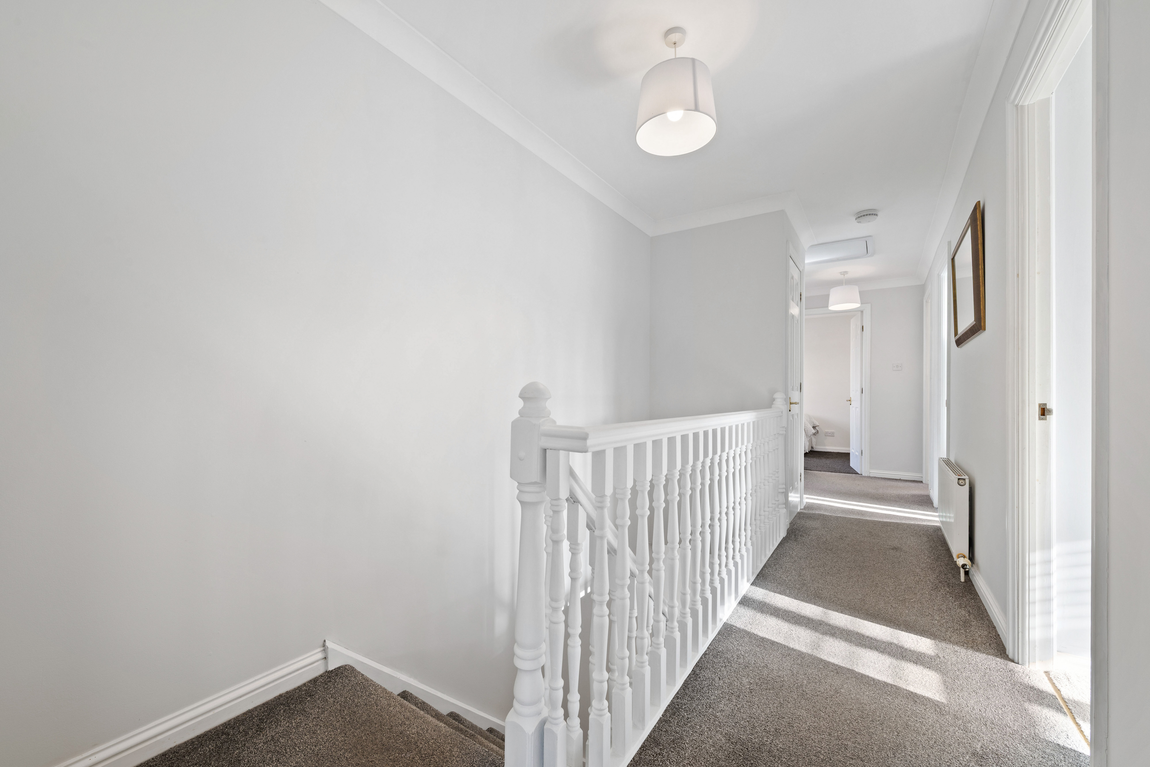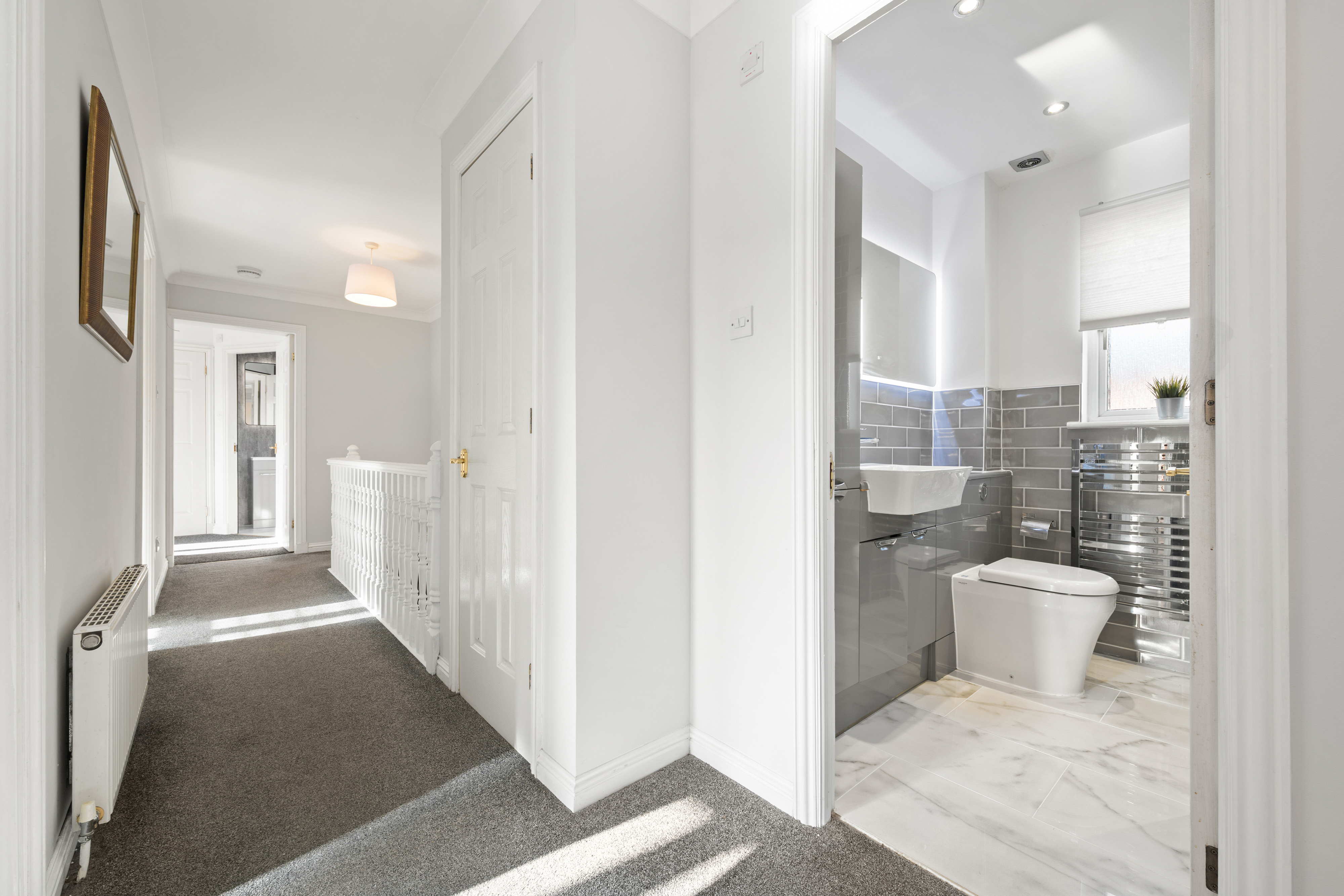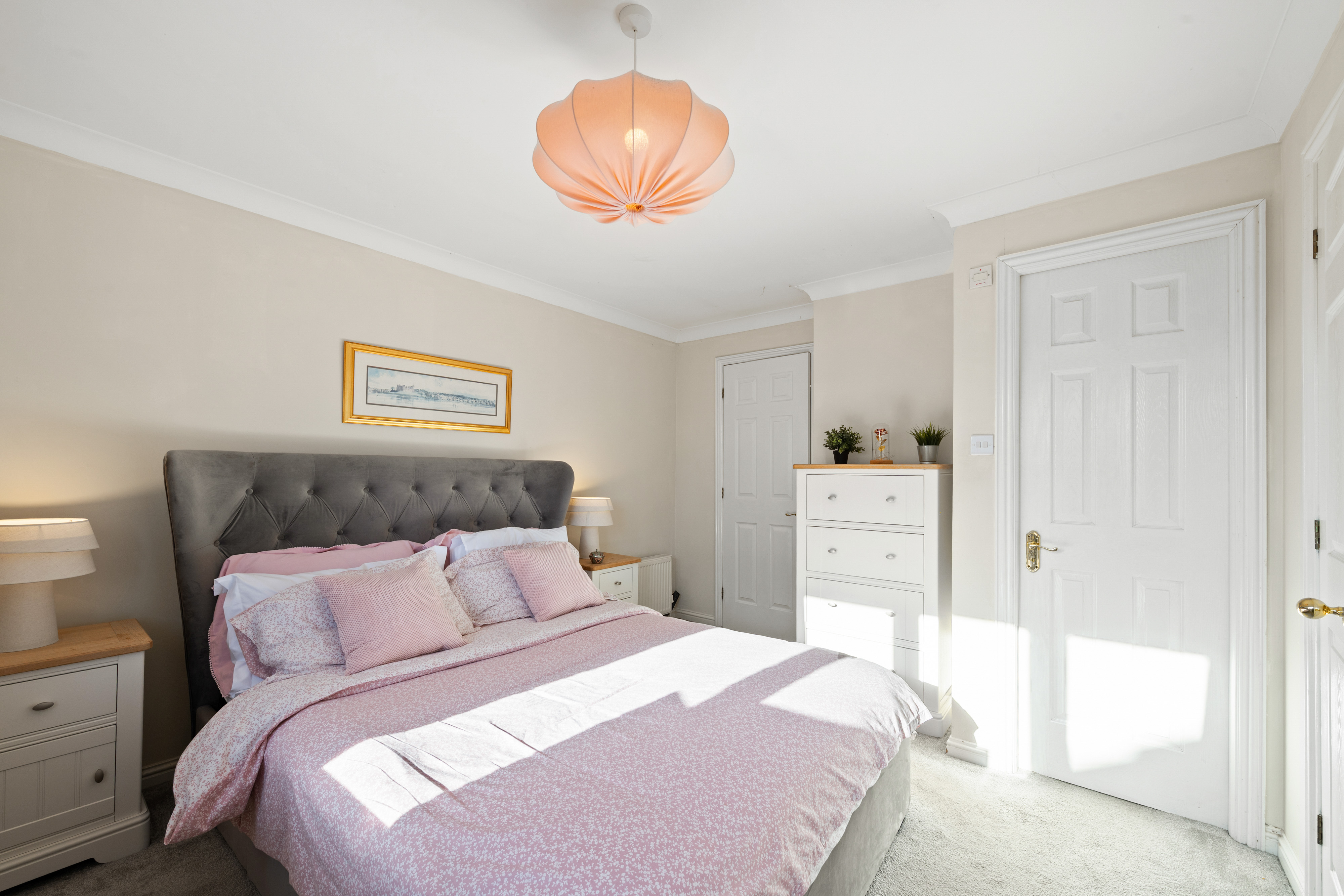 Upstairs, the property offers five well proportioned double bedrooms arranged around a spacious landing. The principal bedroom is located to the rear of the home and comfortably accommodates a super king size bed with bedside cabinets. This room benefits from fitted wardrobes and a private ensuite shower room finished with full tiling.