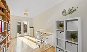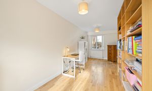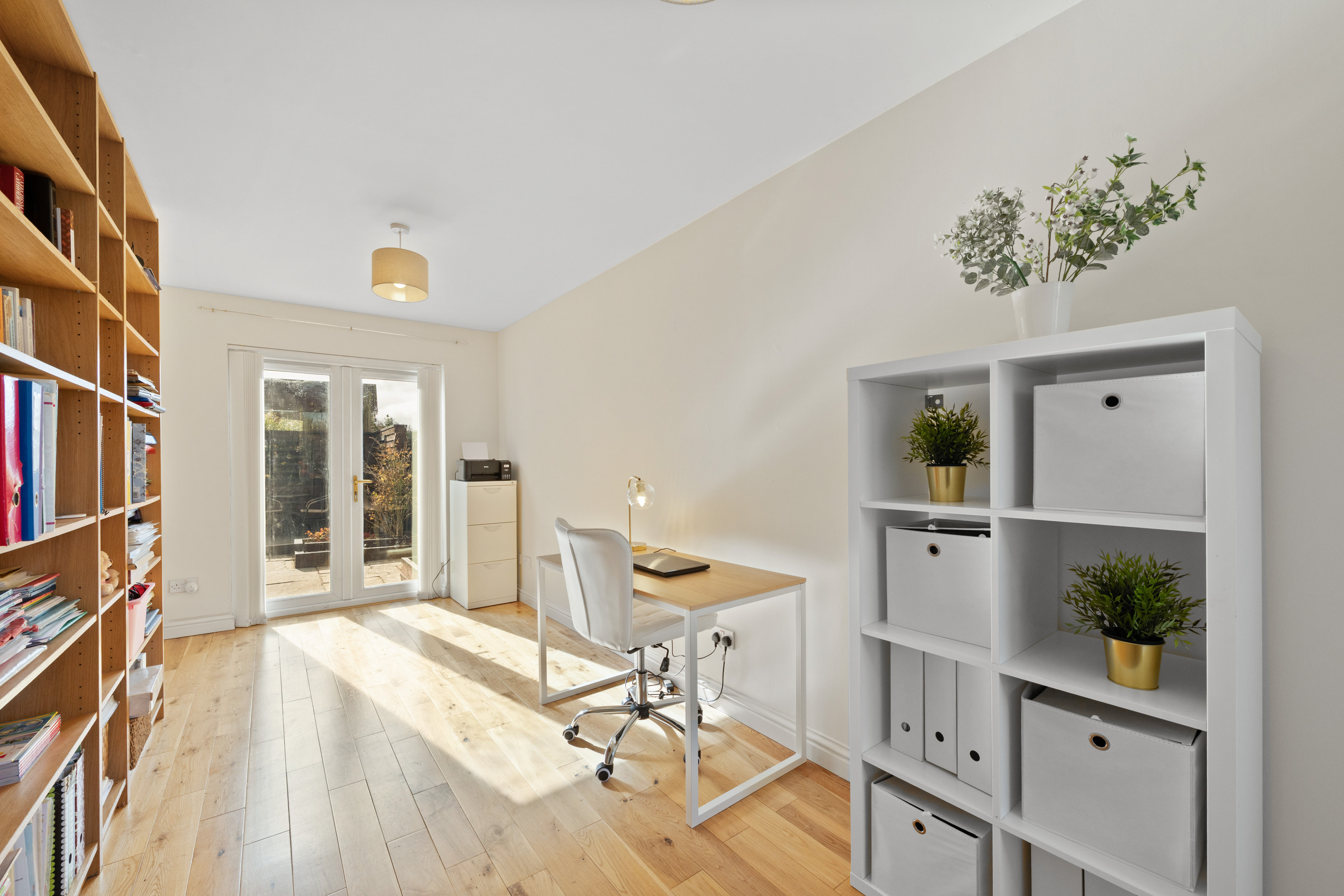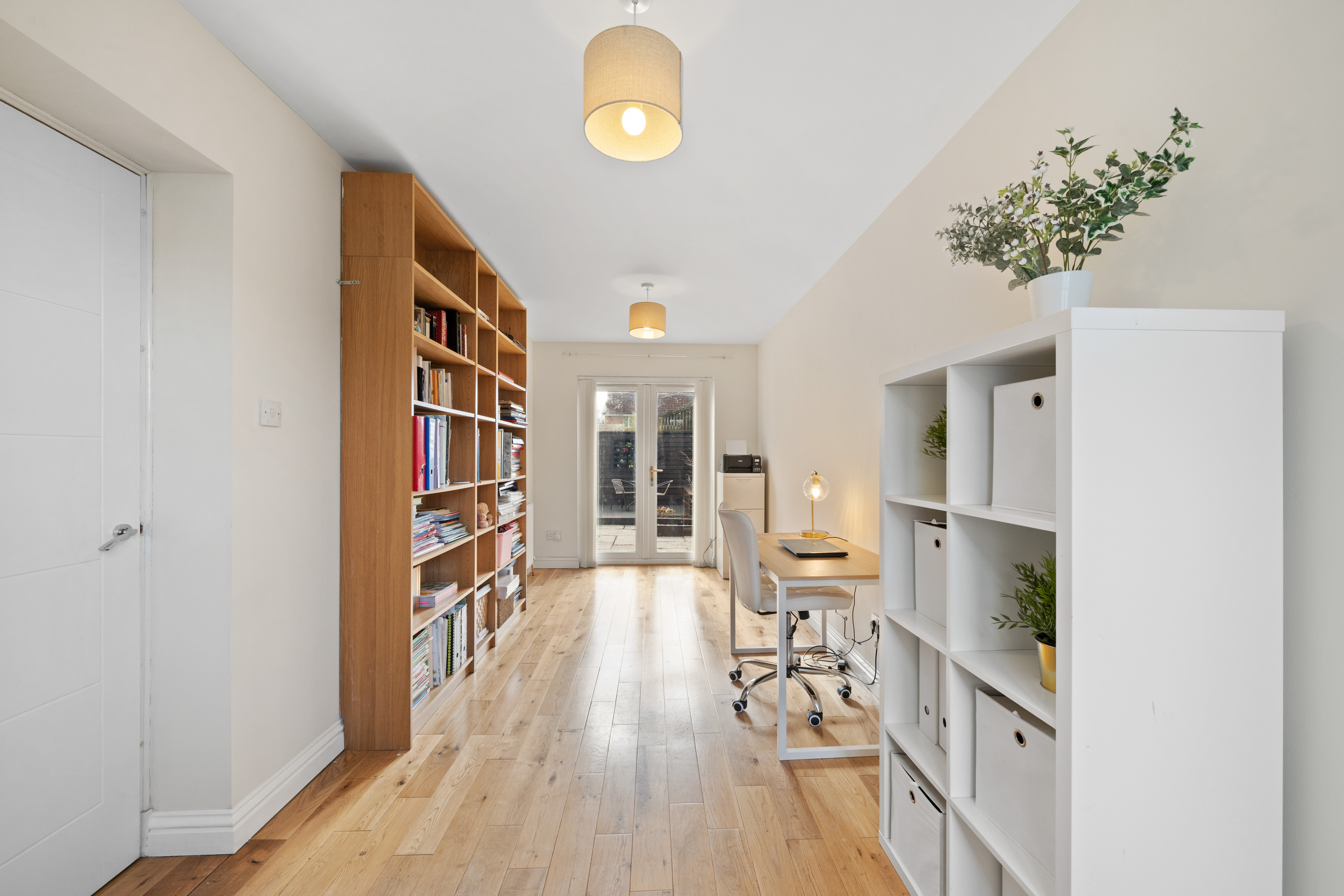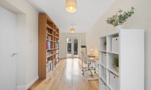 Forming part of the two storey side extension is an additional reception room, currently used as a home office. This is a highly versatile space that could function as a sixth bedroom, second lounge or workspace. The room benefits from both front facing and patio doors leading to the rear garden.