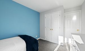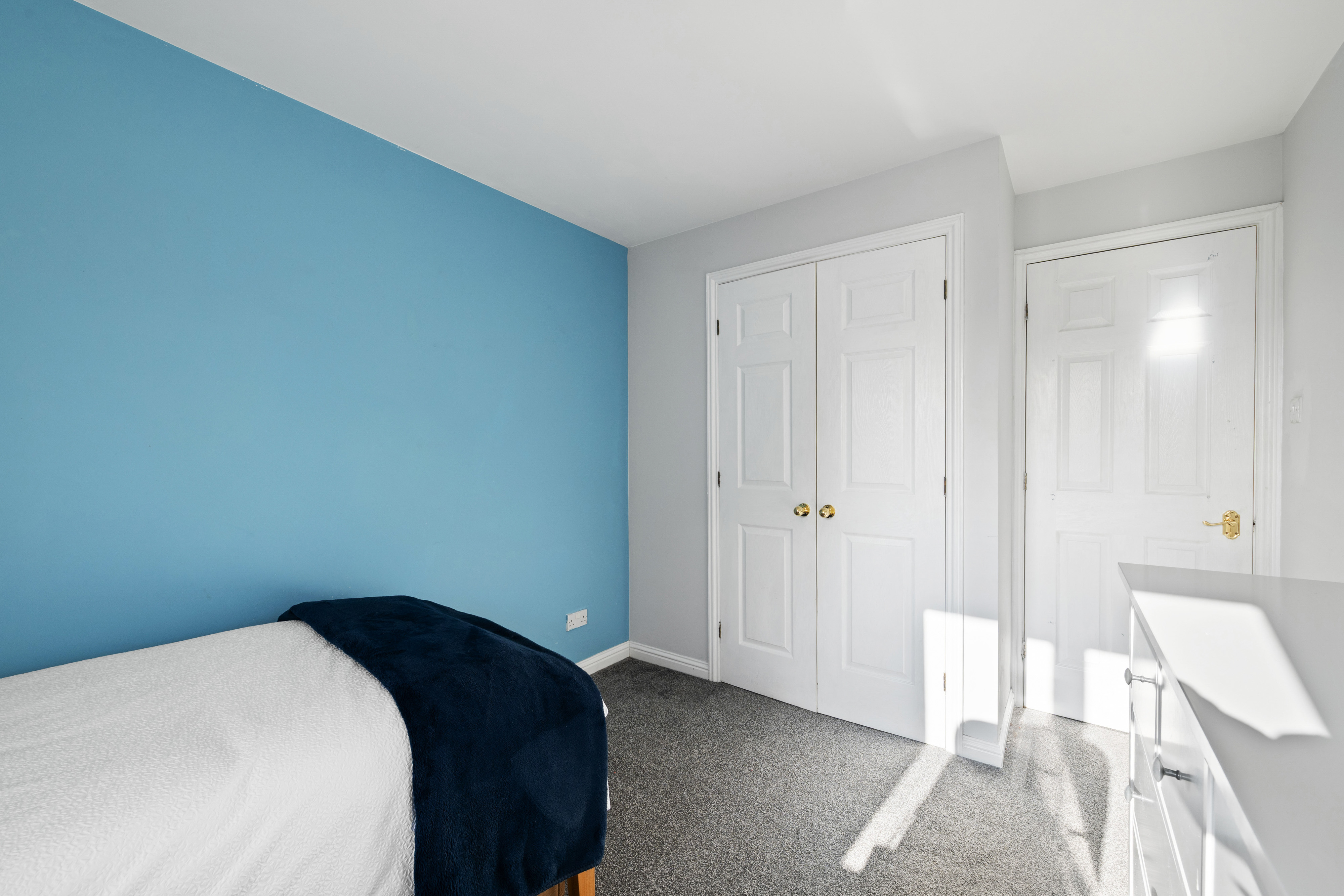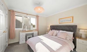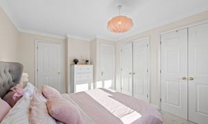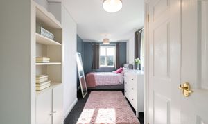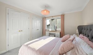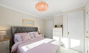 Bedroom two, also positioned to the rear and forming part of the two storey extension, is another generous double bedroom with fitted wardrobes and its own ensuite shower room. Bedrooms three, four, and five are all well sized double rooms, each offering space for double beds with bedside cabinets and wardrobe furniture, making them ideal for growing families.