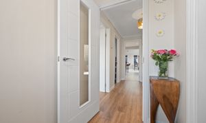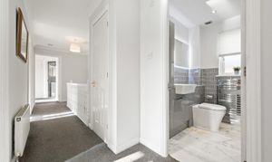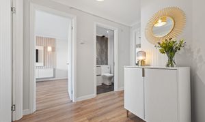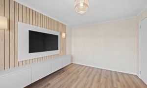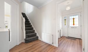 Upon entering, you are welcomed into a bright and spacious hallway which provides access to the main living areas. Positioned to the left hand side is a versatile front facing reception room, currently used as an additional lounge, featuring wooden flooring and a media wall. This flexible space can also be used as a sitting room, playroom or home office depending on requirements.