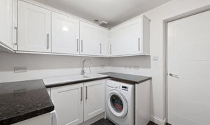 The ground floor further benefits from a downstairs WC finished with wet wall tiling, along with useful storage cupboards. Internal access is provided to the double garage, part of which has been adapted to create a practical utility area for white goods while still retaining valuable garage storage.