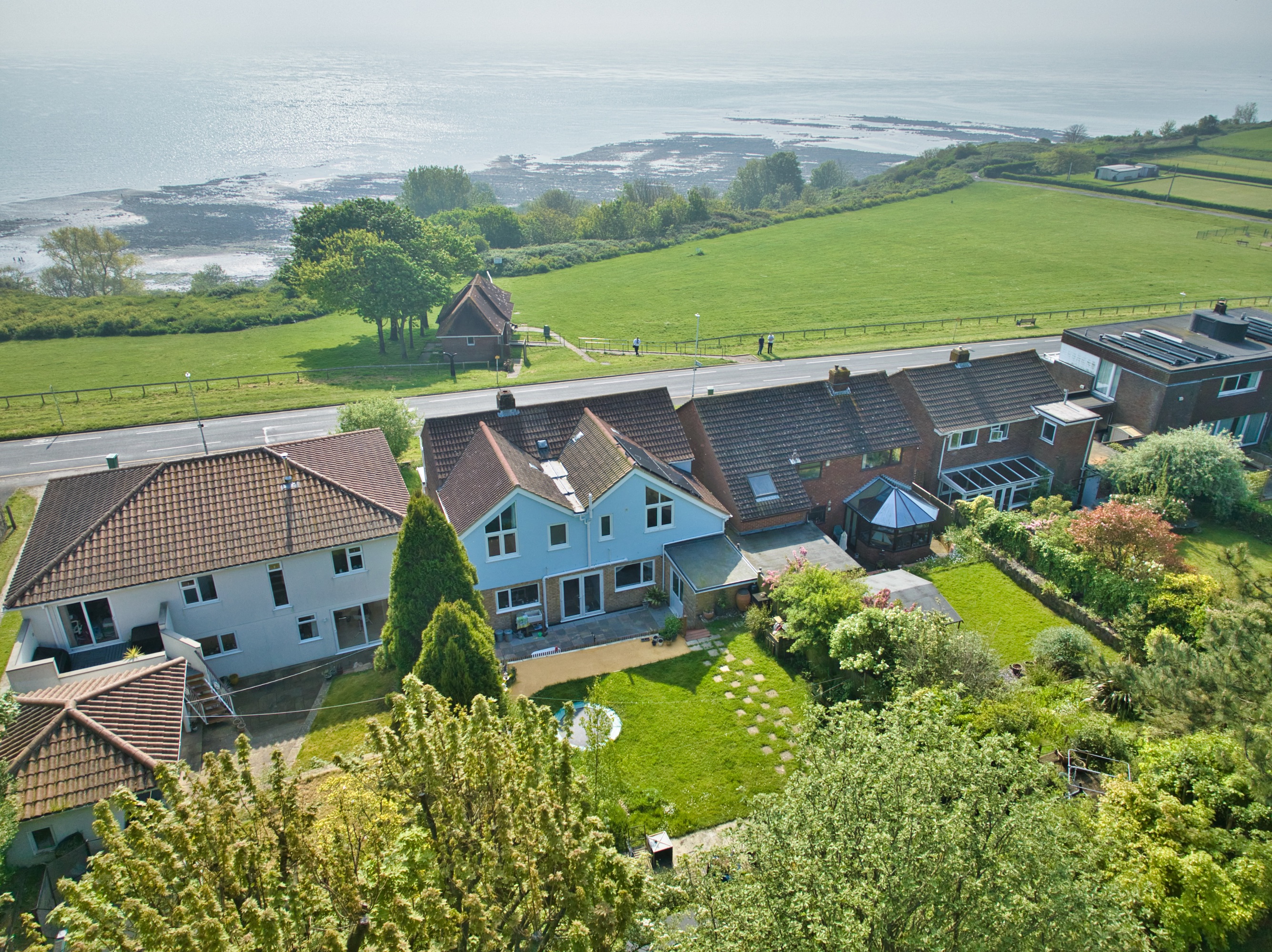 Presenting a rare opportunity to own a truly remarkable abode, this exquisite five bedroom detached house is a coastal gem boasting uninterrupted sea views. Situated in a prime location, this one-of-a-kind property offers a lifestyle of luxury and tranquillity. Boasting a large balcony that spans the length of the house, revel in the breath-taking vistas from the White Cliffs of Dover to the enchanting French coast. The grand open plan living space is a showstopper with wall-to-wall windows framing the mesmerising views, while the large kitchen is a culinary delight with its island and space for entertaining or modern family living on a grand scale. Featuring 12 solar panels with smart technology and battery storage, this eco-friendly home seamlessly blends modern amenities with environmental consciousness. Also creating an EPC rating B. Additionally, the internal garage & separate snug provides versatile spaces for storage, kids room, workshop or creative studio. The property further enjoys five generous bedrooms, three of which offer direct access to the balcony, along with a modern family bathroom and two stylish shower rooms. Step outside into the private rear garden that backs onto one of the historic Martello Towers, offering a serene retreat in the midst of natural beauty.