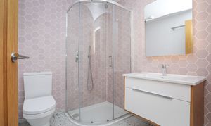 With a shower, hand basin and toilet