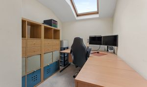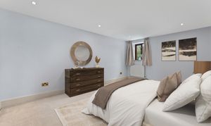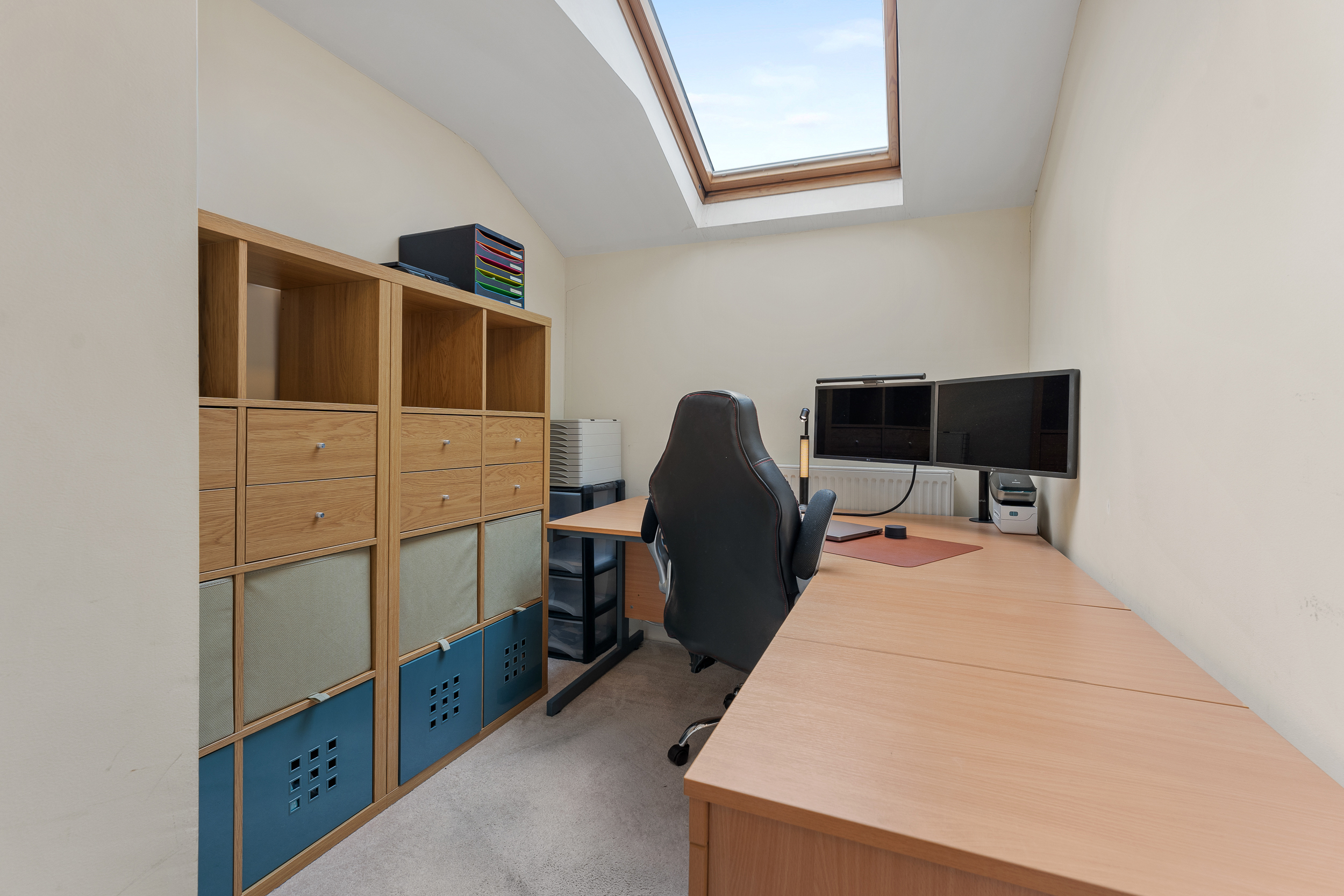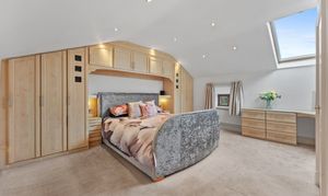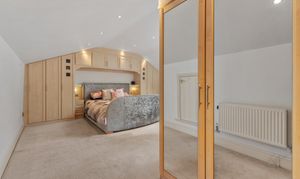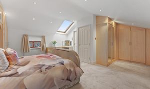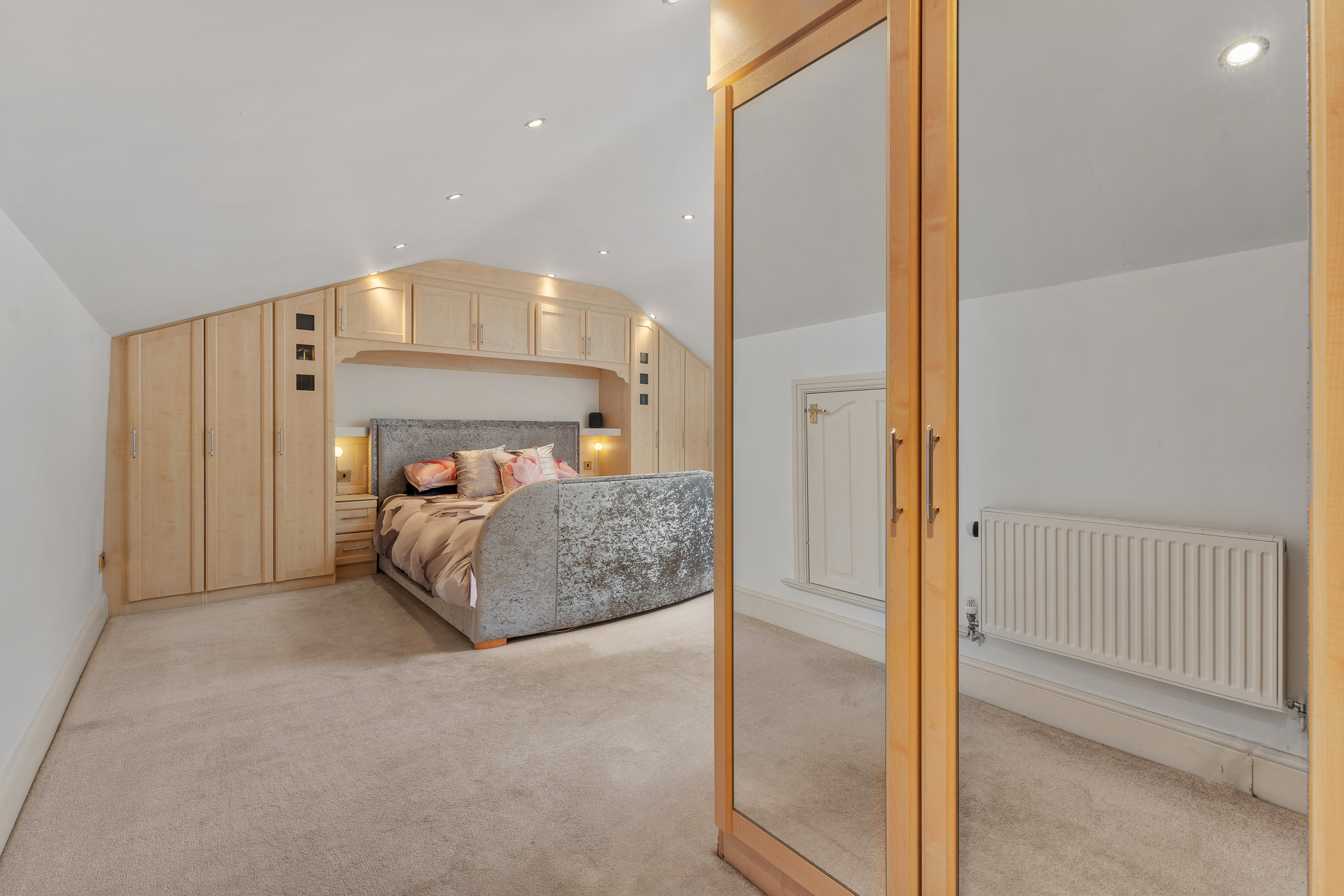 The entire top floor is devoted to the principal suite. With bespoke built-in closets, extensive eaves storage and space for a super-king bed, it is both practical and indulgent. The adjoining en suite adds privacy and comfort, creating a true sanctuary at the top of the house.
