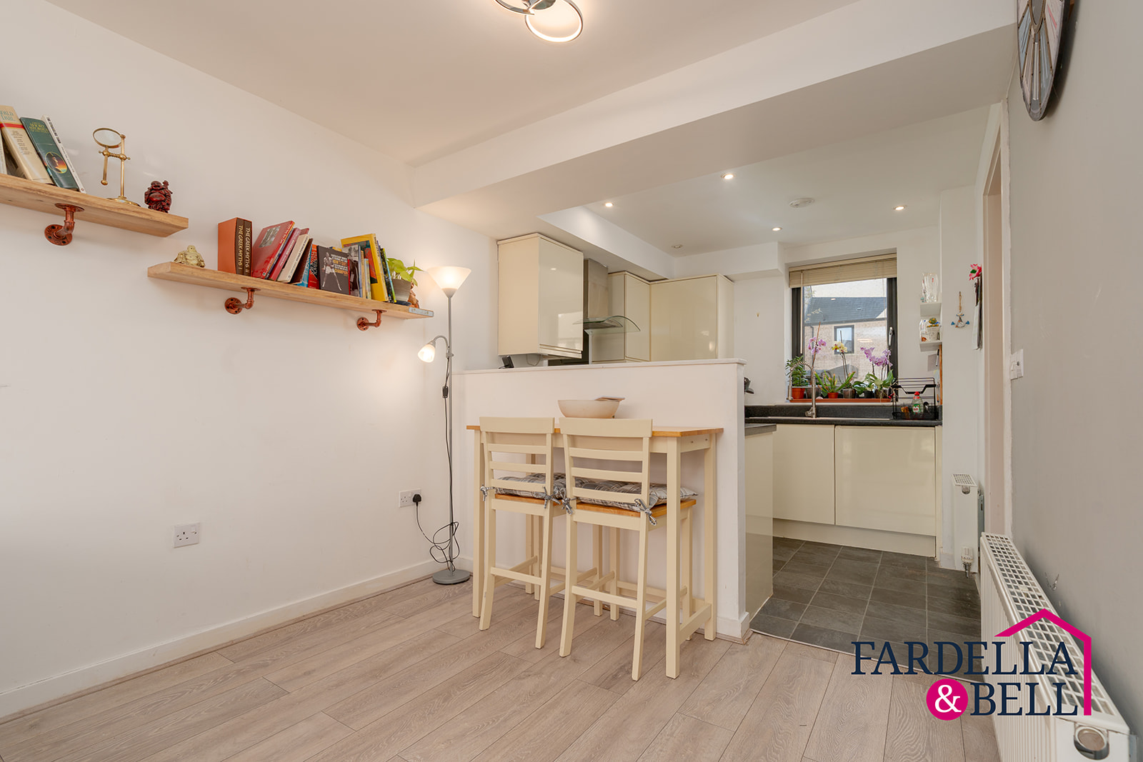 Step inside via the entrance hall, which provides access to the kitchen and leads through to the main living space. Positioned at the front of the property, the kitchen is neatly arranged with a range of fitted units and worktop space, creating a practical and well organised area for everyday cooking. A front-facing window allows natural light to fill the room, giving it a bright and welcoming feel. Moving through the property, the space opens into a comfortable living room at the rear. This is a lovely spot to unwind, with views and direct access to the garden that help bring the outside in. Adjoining the living area is a dedicated dining space, creating a natural setting for meals and entertaining. The layout flows well, offering flexibility for both relaxed evenings and social occasions. A convenient ground floor cloakroom completes the layout.