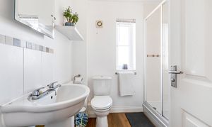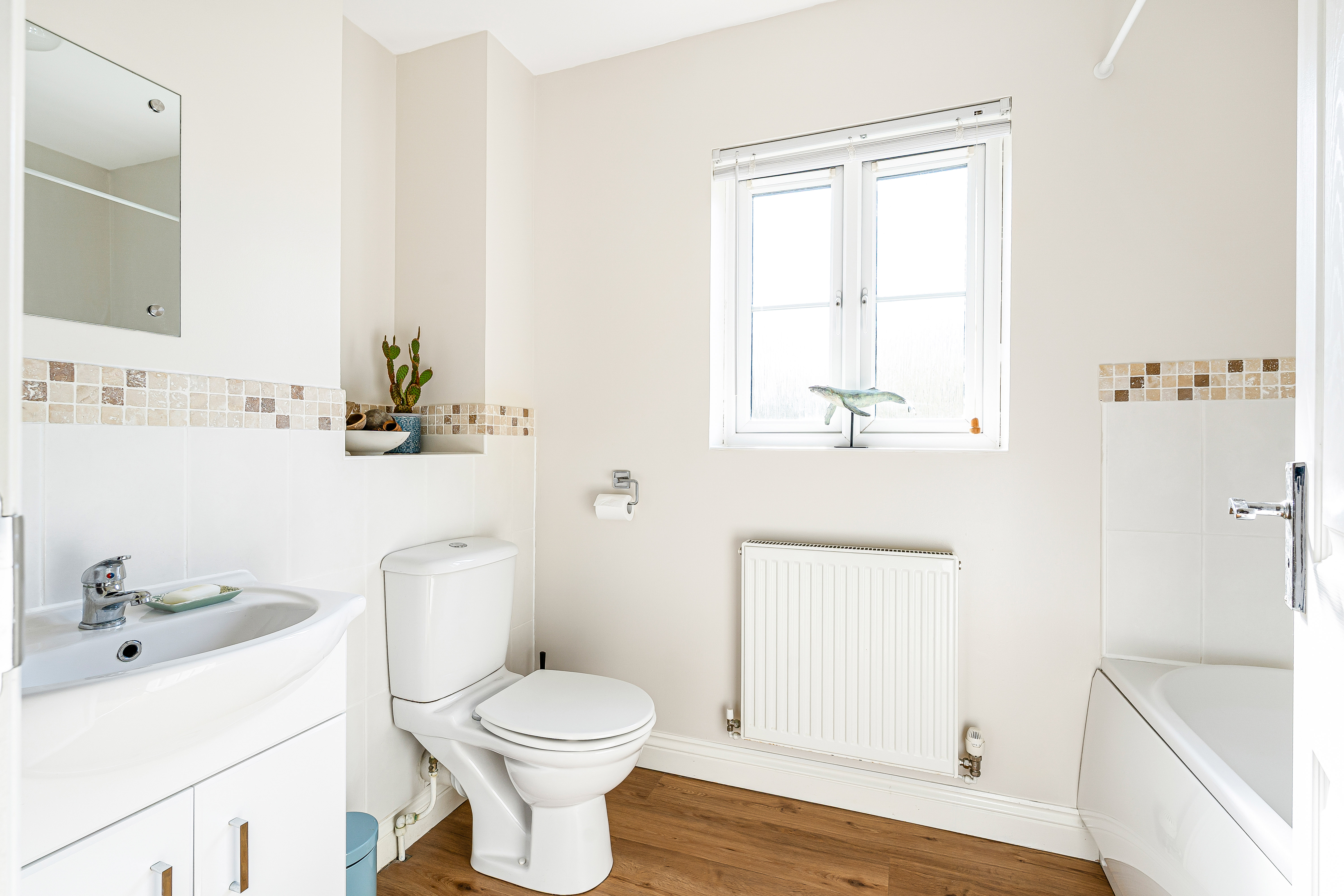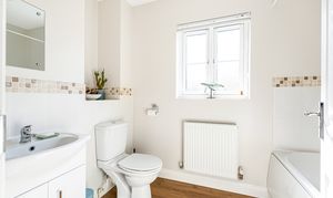 To complete this floor the family bathroom with white suite comprising panel bath, pedestal wash hand basin, low level WC, radiator, double glazed window, shaver point.