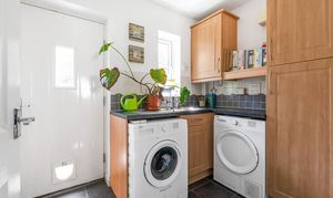 You also have a utility room with double glazed door to the rear garden, double glazed window, fitted storage cupboard, inset single drainer stainless steel sink, plumbing for washing machine and space for tumble dryer.