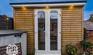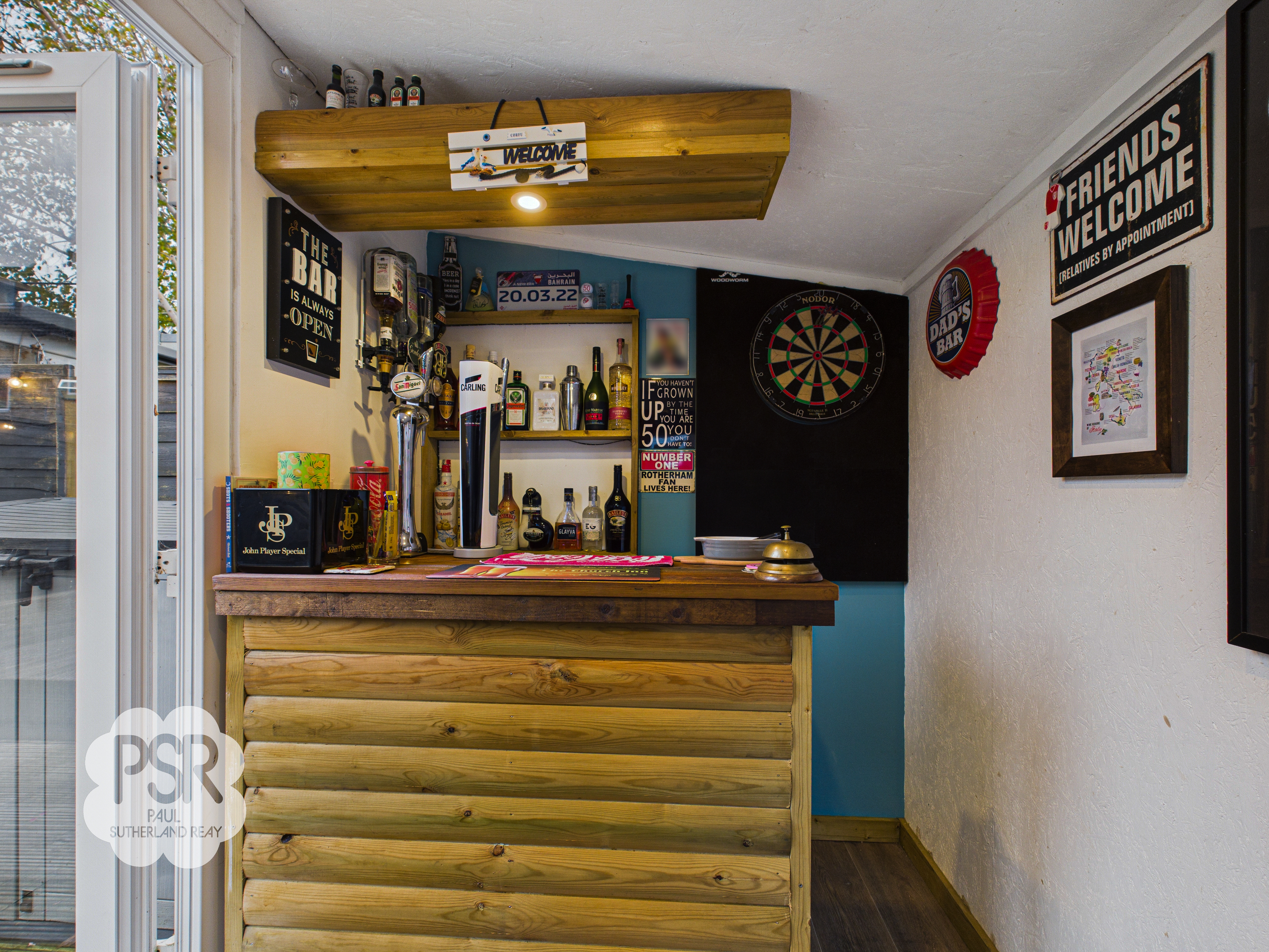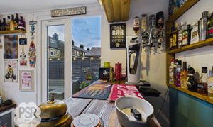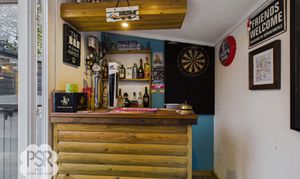 UPVC window facing the rear of the house. The room also includes a UPVC window door, three mounted spotlights, and full lighting and power. Currently used as a fully functioning bar with working beer pumps.