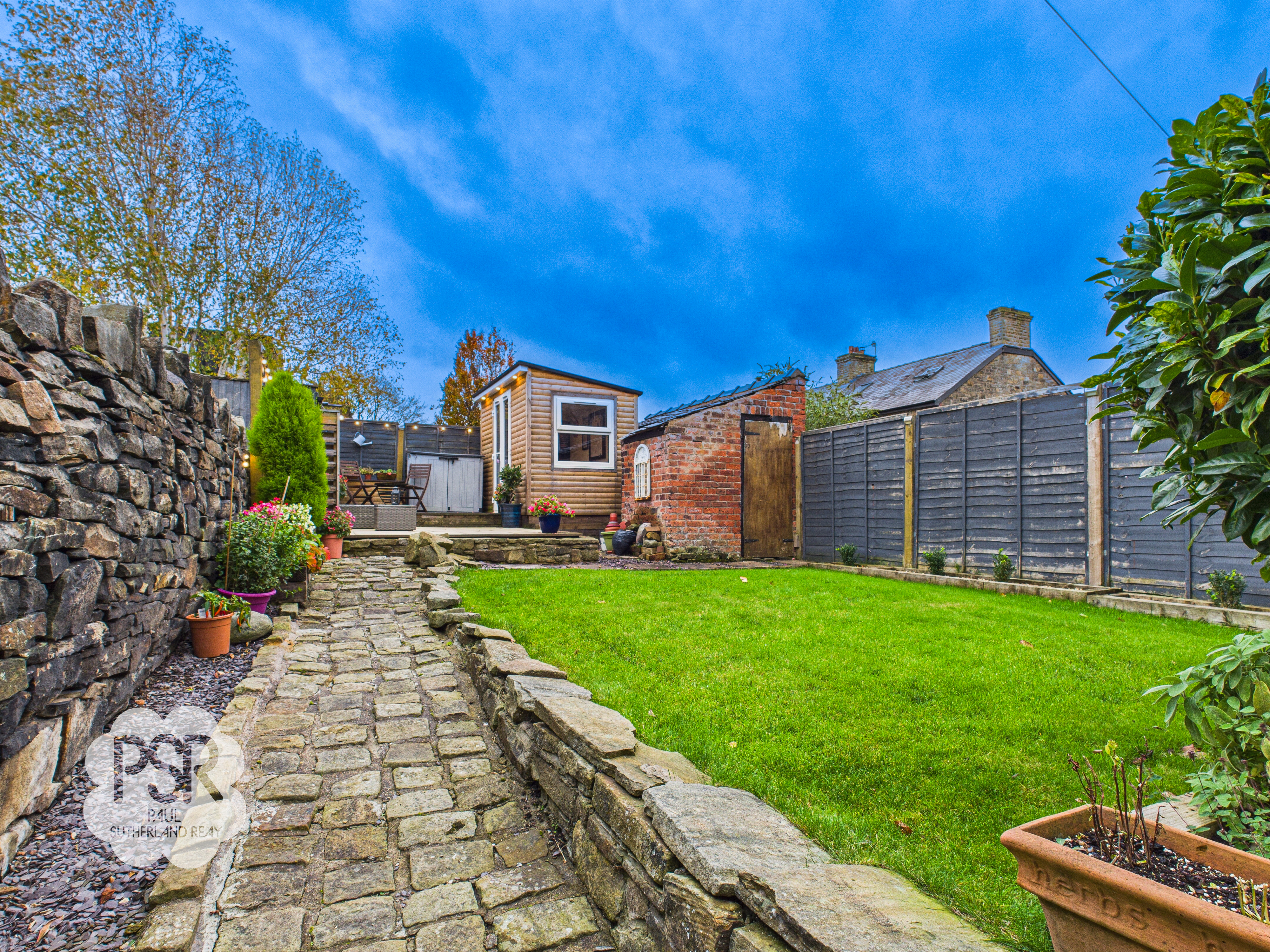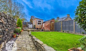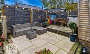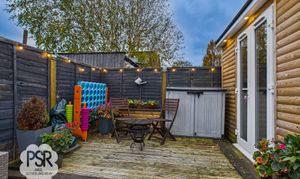 Outside, the South facing rear garden is a true oasis with multiple seating areas to enjoy the outdoors. As you step outside, you're greeted by a stoned seating area leading to steps that ascend to a separate lawned area – ideal for summer picnics or gardening. Above, there is another stone patio, perfect for setting up a barbeque or outdoor dining set. Continuing upwards, a fully decked area provides even more seating space and access to the garden room and a brick shed for storage. This well-designed outdoor space offers versatility and room for relaxation, making it a great extension of the home. Whether you're looking for a place to unwind after a long day or host gatherings with friends and family, this garden provides the perfect backdrop for outdoor living.