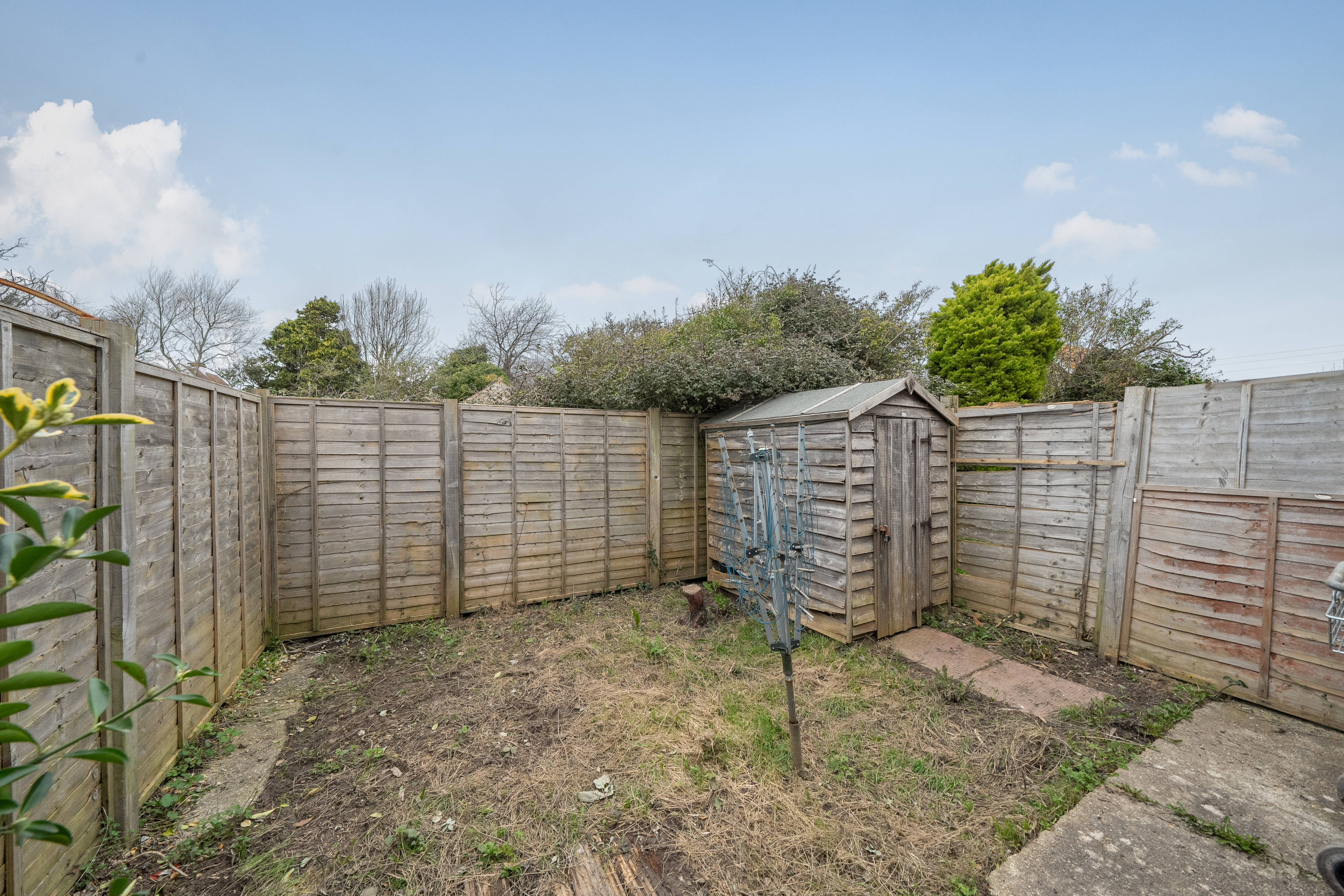 Outside to the rear and accessed directly from the property there is an enclosed, west facing garden which is mainly laid to lawn and complete with a wood panelled storage shed. To the front there are two allocated parking bays.