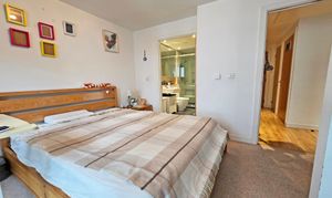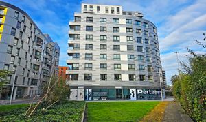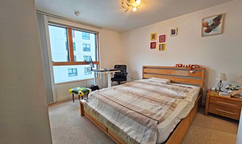 Upon entering the apartment, you are greeted by a spacious 21' dual aspect living room, flooded with natural light from large windows that offer captivating views of the surrounding area. The stylish integrated kitchen featuring gloss-finish units seamlessly blends elegance and functionality, making it a delightful space for culinary enthusiasts and entertainers alike.