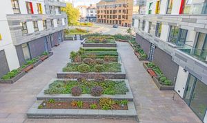 A communal garden, designed for residents and guests to enjoy. With raised shrub beds, seating areas. All fully and securely enclosed.