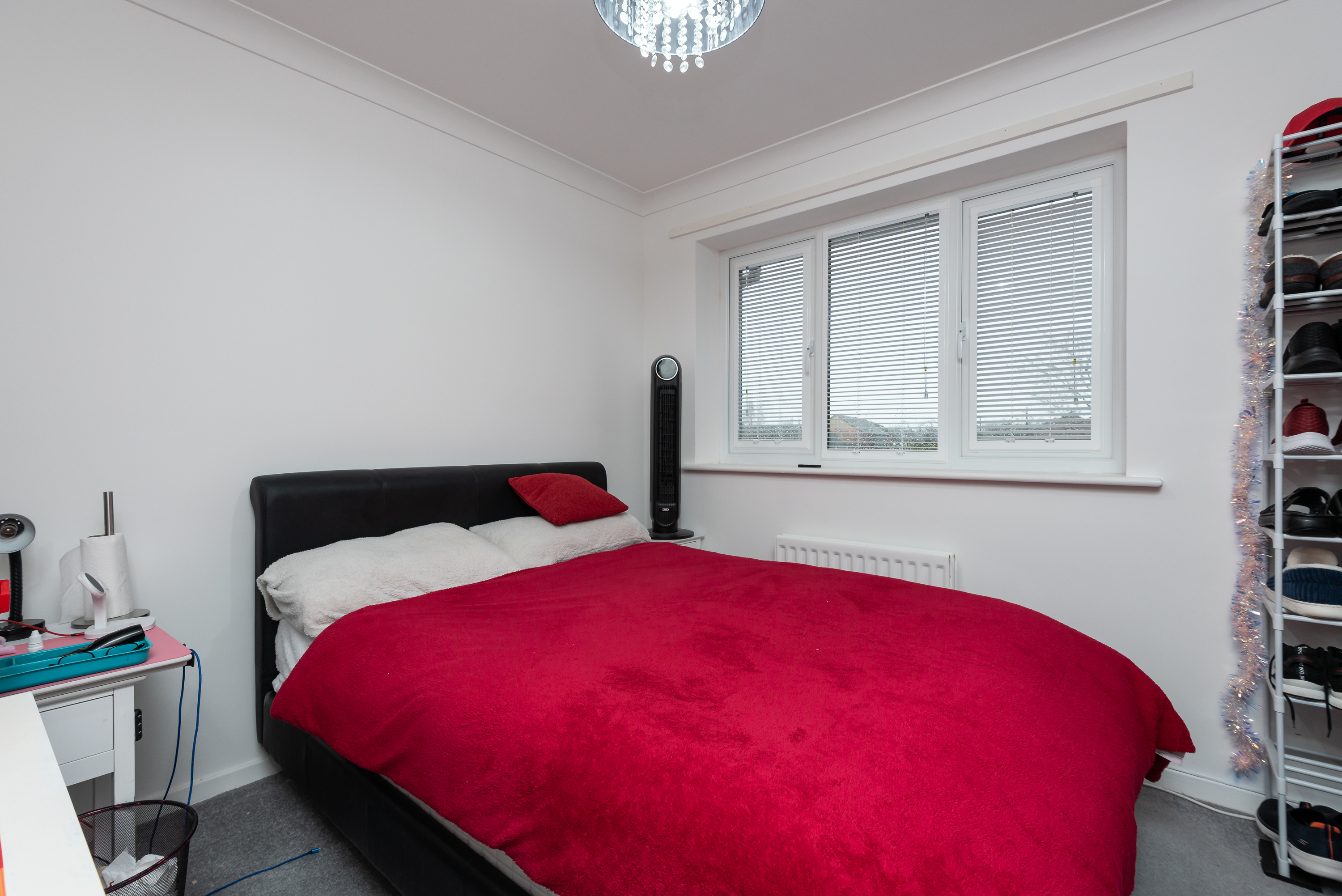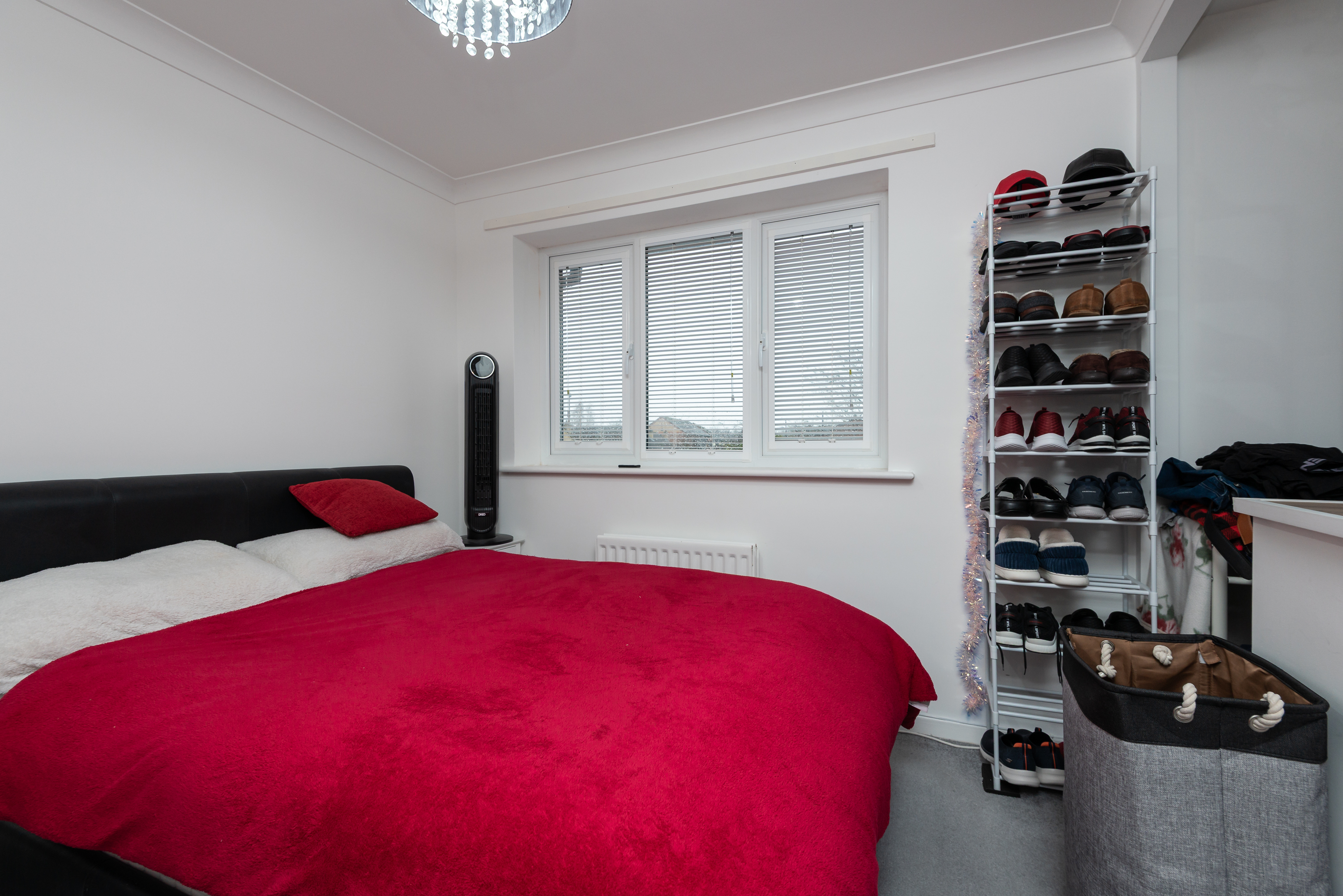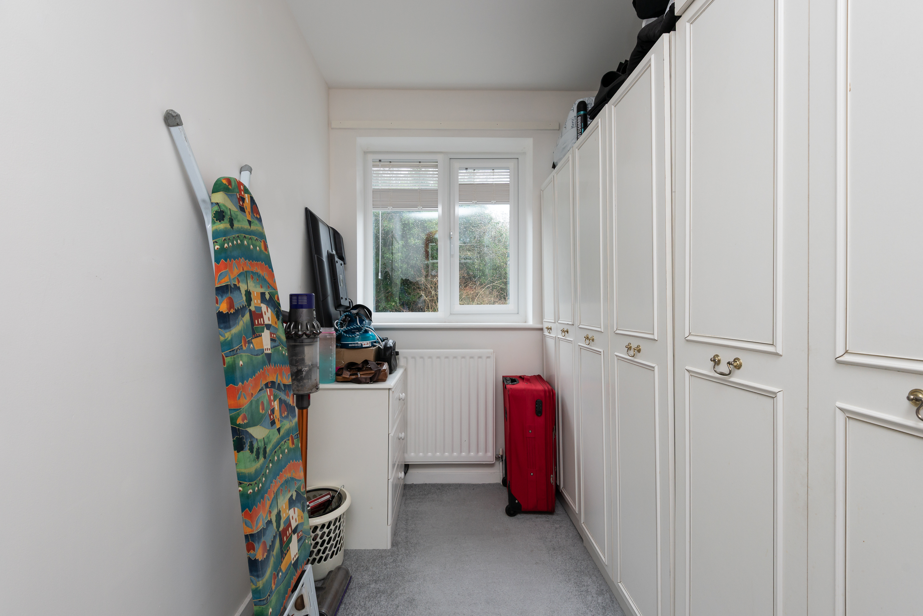 With carpet, built in wardrobes, radiator, and window.