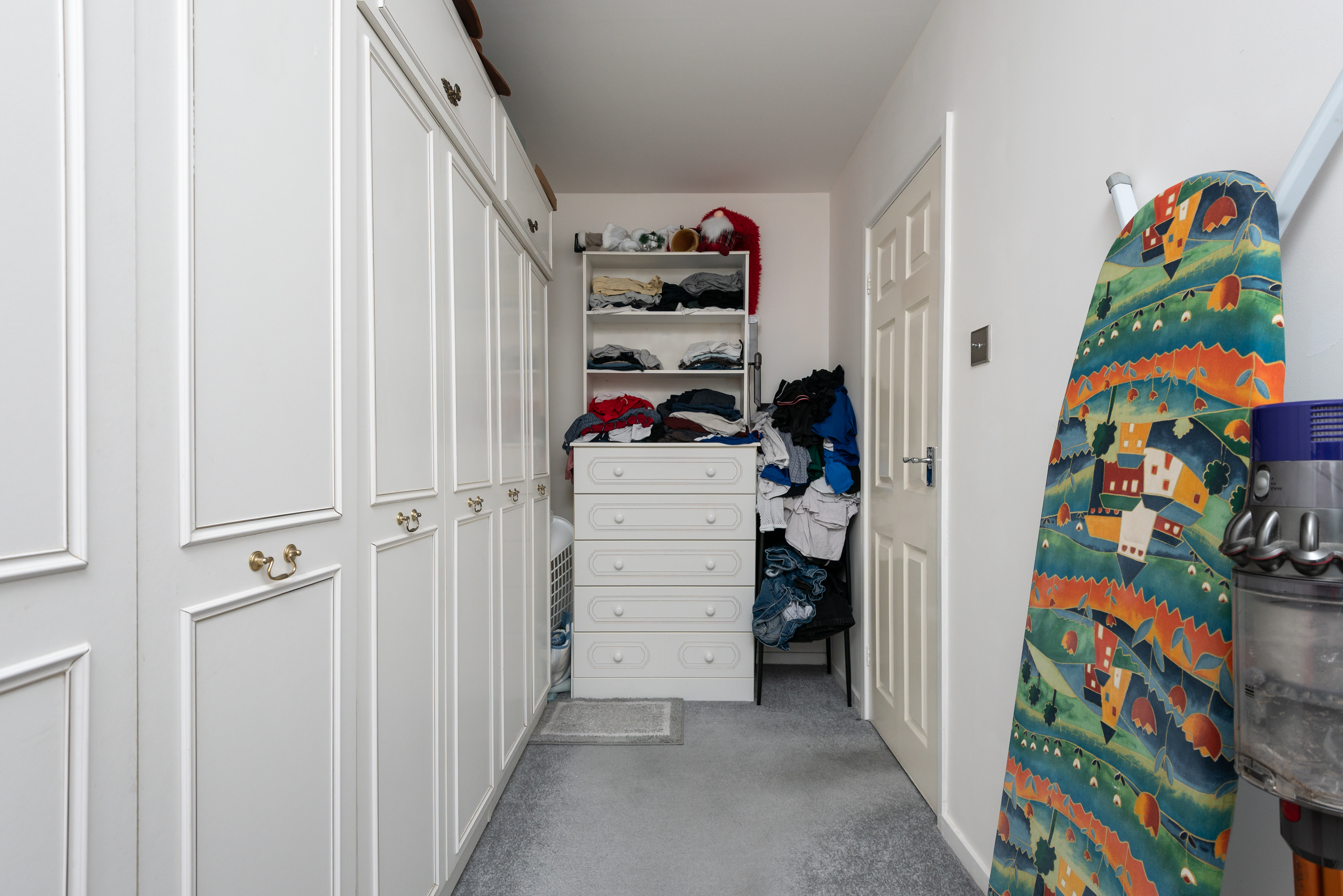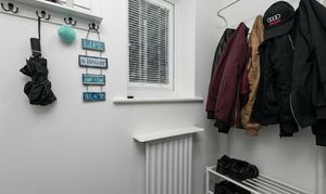 With carpet, additional storage area, radiator, and window.