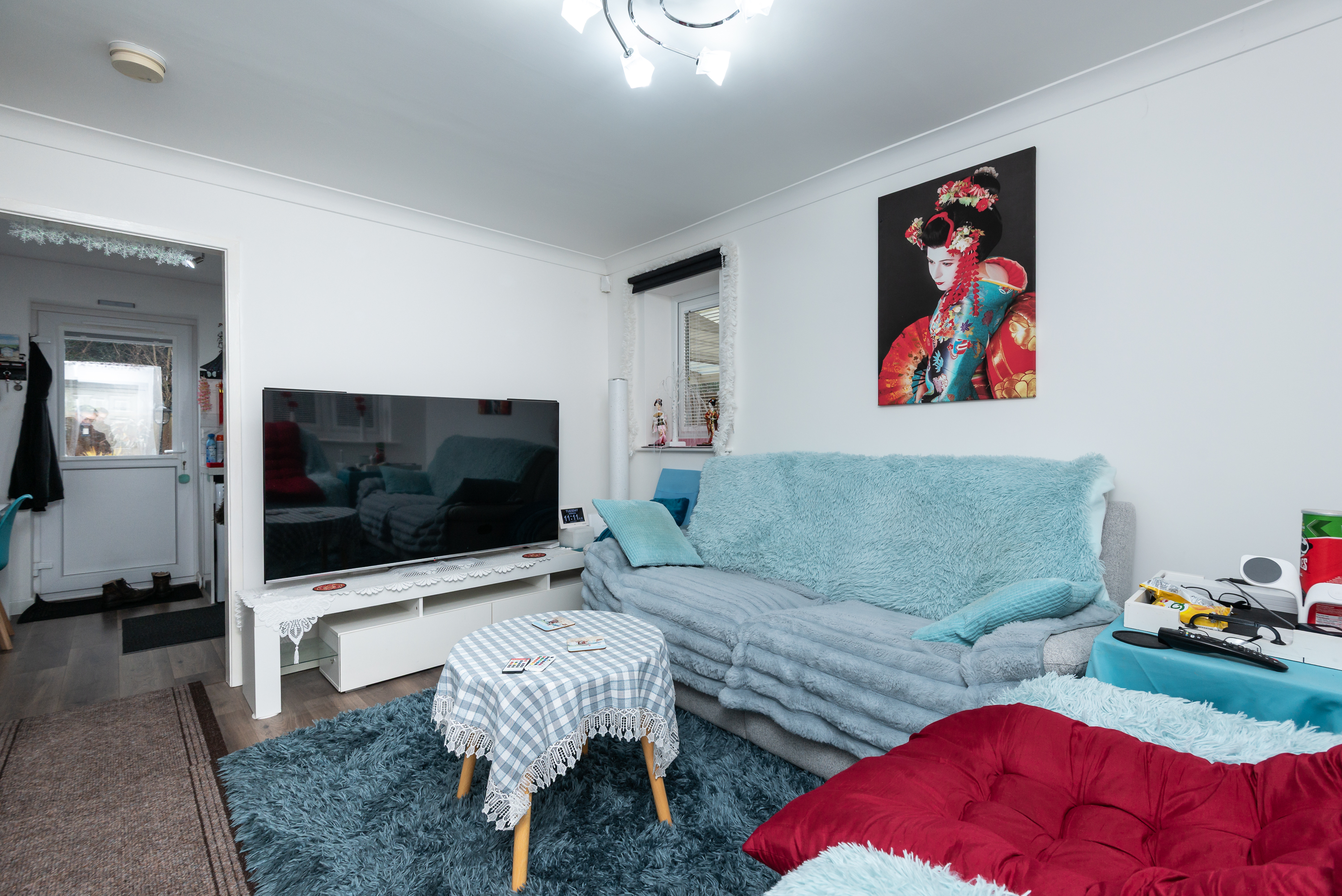 Upon entering, you are greeted by a bright and airy living room, ideal for relaxing or entertaining guests.