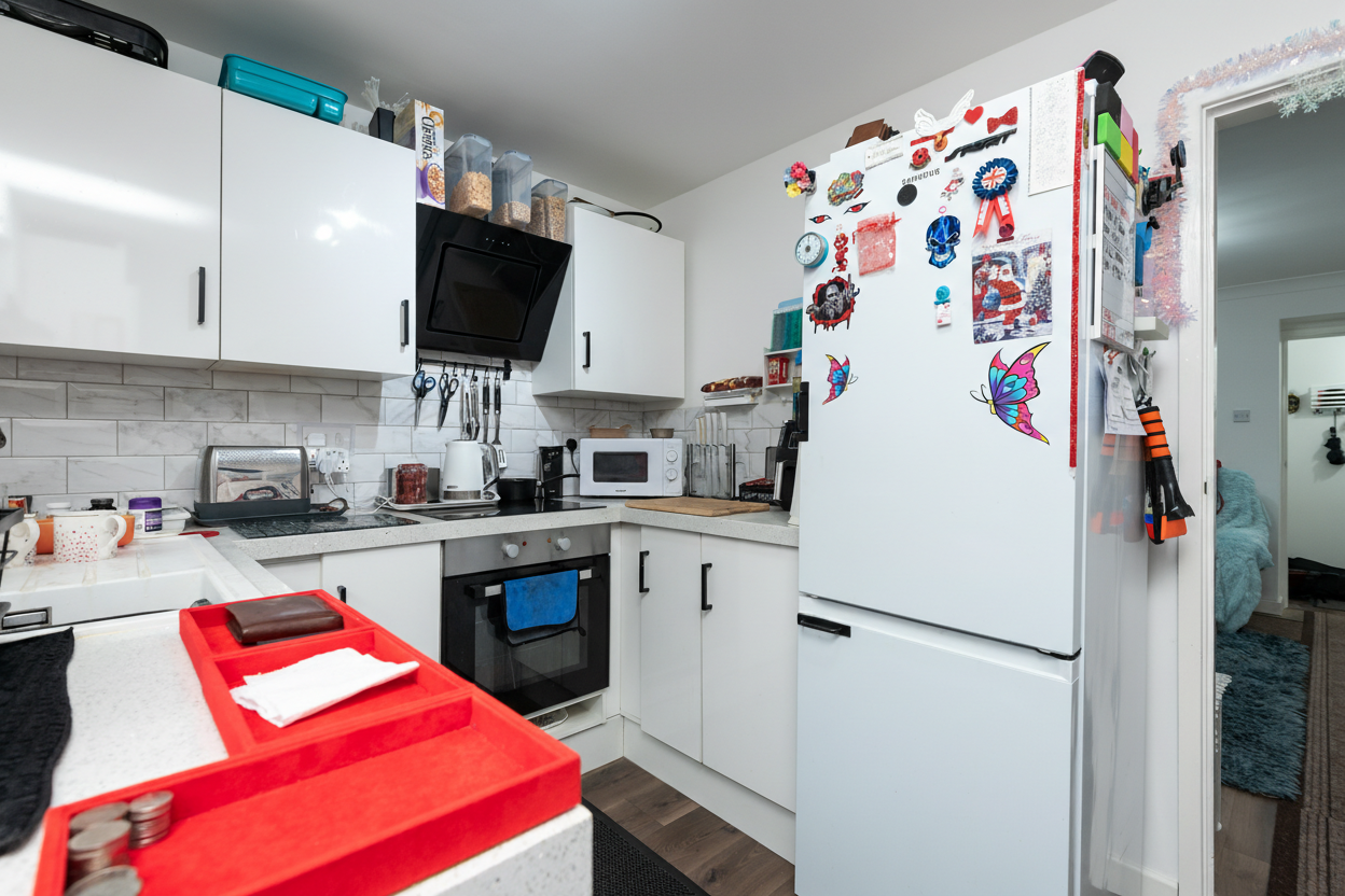 Upstairs, two generously sized bedrooms provide peaceful retreats, each with tasteful décor and plenty of storage, ensuring comfort and practicality for residents. The family bathroom is finished to a high specification, complete with modern fittings and a stylish design that adds a touch of luxury to daily routines.