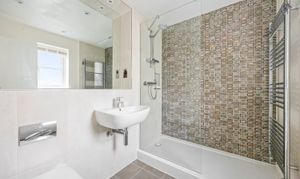 The master bedroom enjoys a modern, contemporary en-suite shower room with white sanitary ware and chrome fitments. There is a second double bedroom plus a family bathroom which again enjoys a high specification suite and fitments and has a bath with wall-mounted shower over.