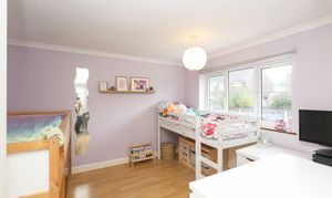 The ground floor is particularly impressive, offering a fabulous amount of space with an open-plan flow that is perfect for both everyday living and entertaining. A light-filled and generously sized living room is flooded with natural light and leads seamlessly through to a superb dining area, an excellent space for family meals and entertaining. The conservatory extends the floor’s accommodation overlooking the rear garden. The modern fitted kitchen completes the ground floor accommodation, complementing the home with style and practicality.