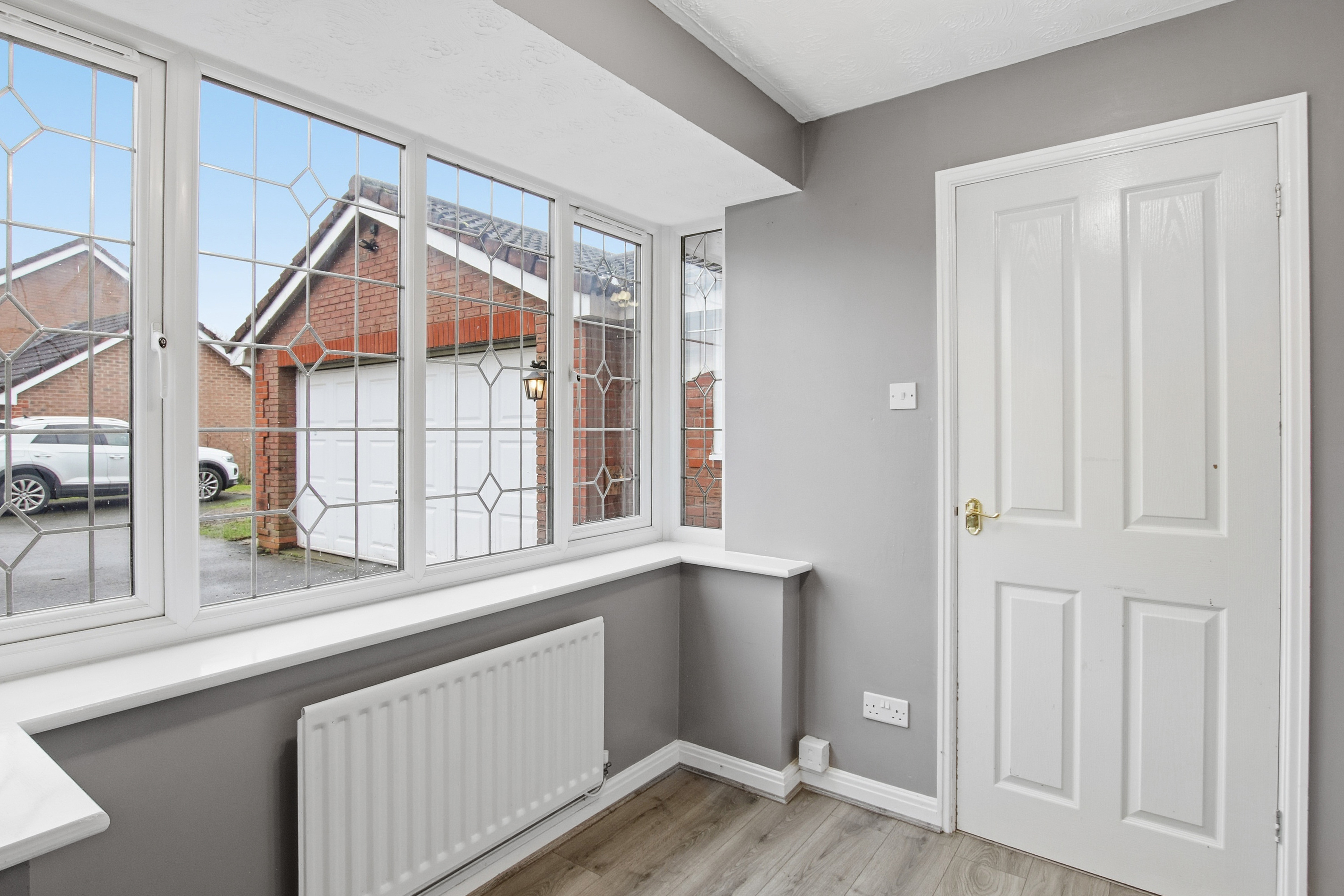 One of the things I really love about this house is the space and flow downstairs. The layout just works. There’s a large living room with sliding doors that open straight out onto the garden, a separate dining room, and a spacious kitchen with a handy utility room off from there. You’ll also find a downstairs WC and internal access into the double garage. All the downstairs rooms link together in a circular layout, which makes the house feel really connected and easy to live in.
