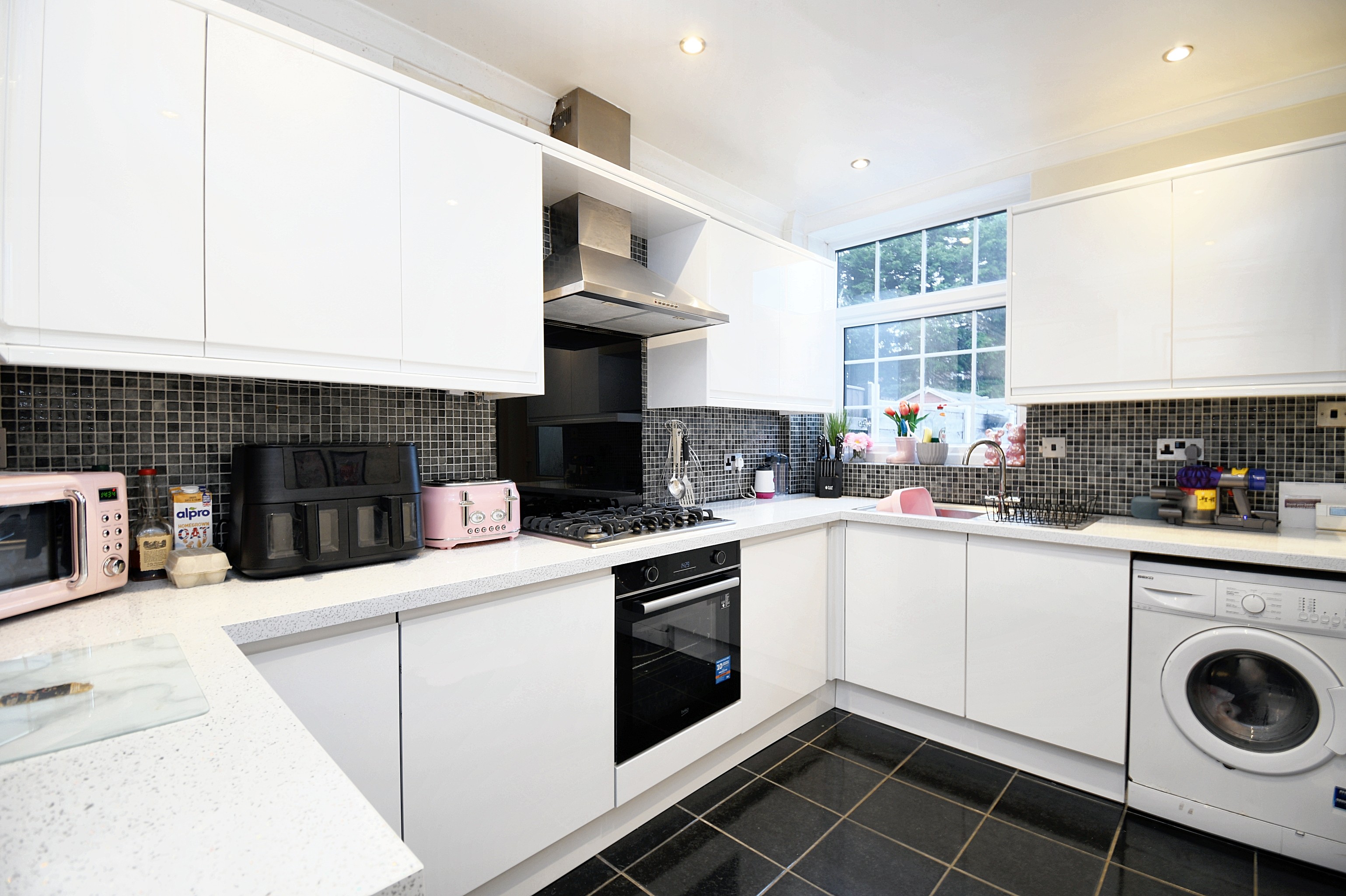 To the rear of the property, you will find a sun-drenched garden, with a central lawn and paved patio. Off-road parking to the front ensures convenience for vehicle owners.