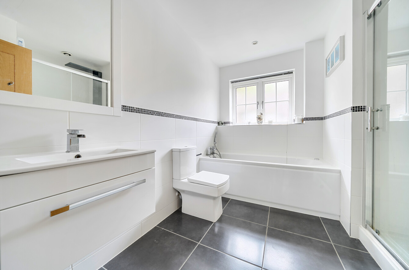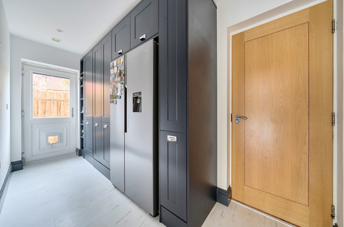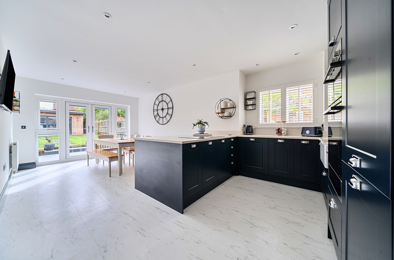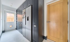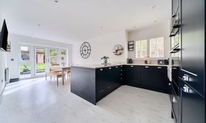The study, to the front of the property, has a bay window and offers the ideal space for those working from home. The dual aspect sitting room is a lovely bright space with plenty of natural light and double doors leading out to the garden. Located centrally, the dual aspect family room offers a versatile space with double doors providing plenty of light. The dual aspect kitchen/dining room is a real highlight of this home, with practical and stylish tiled flooring and spotlights. The kitchen is fitted with modern, shaker-style units with contrasting, Granite worktops and finished with a breakfast bar. Appliances include a split-level double oven, ceramic hob, and integrated dishwasher and fridge/freezer. The utility room offers space with plumbing for a washing machine, access to the integral double garage, and with a door leading into the garden, is ideal for use as a boot room.