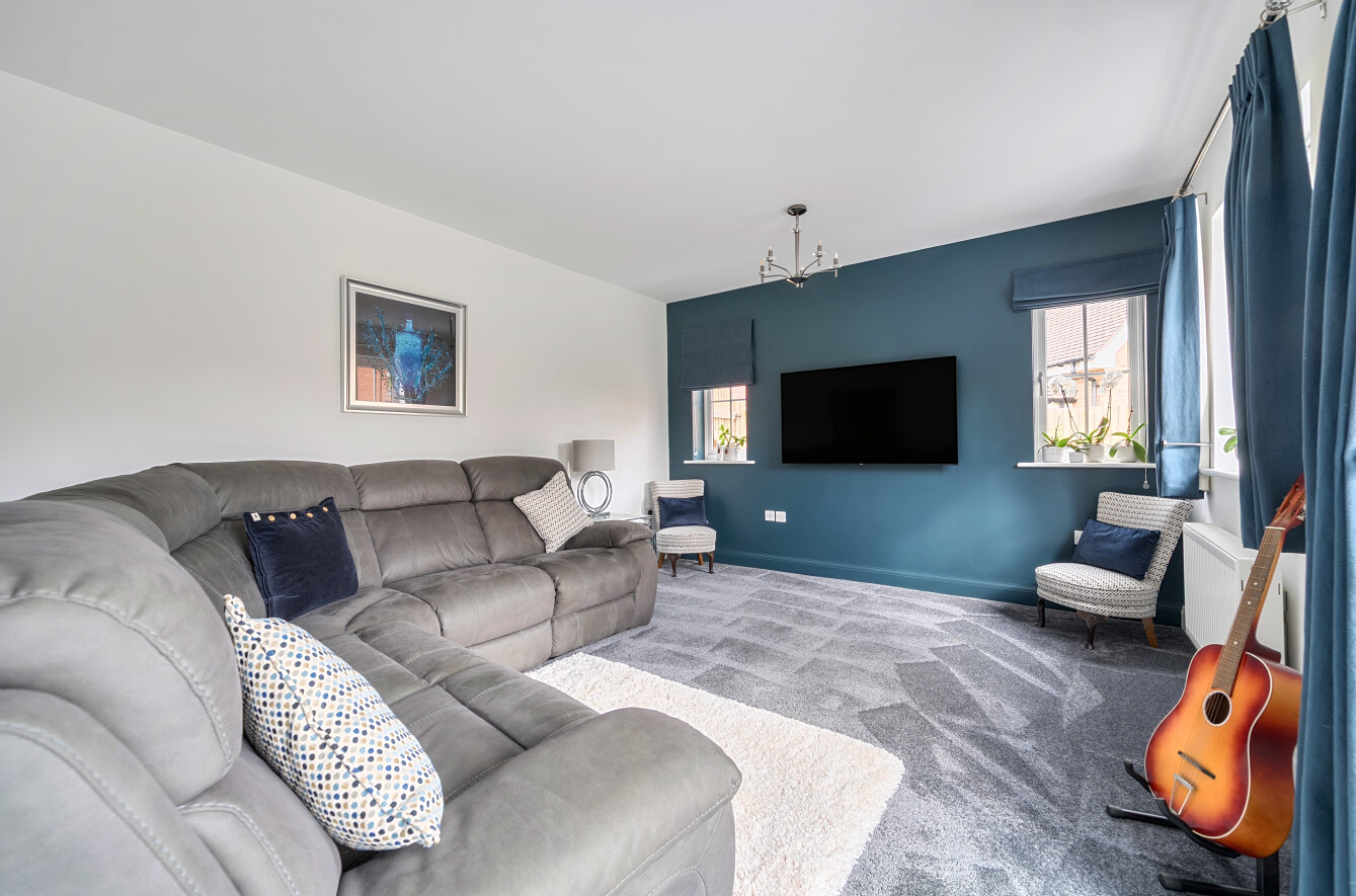 The welcoming hallway provides access to the study, sitting room, family room, downstairs cloakroom, kitchen/dining room and stairwell to the first floor.
